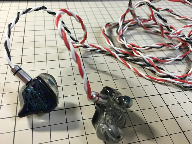HA-2では3.5mm4極プラグによるGND分離出力が可能なので、実際にケーブルを製作して試してみました。 AKシリーズをはじめ、多くのDAPやアンプで採用され始め、デファクトスタンダードになりつつある2.5mm4極と異なり、OPPO、SONYなどでのみ採用されている3.5mm4極は既製品も少ないです。なので、さくっと作りました。 以下今回の材料。コネクタはイヤホンに合わせて2pinかmmcxをどうぞ。ちなみにくみたてLabの埋め込みコネクタにもしっかり嵌まるので参考までに。 4極3.5mmプラグ - 海外製コネクター - オーディオ / 映像 :オヤイデ電気オンラインショップ RSCB0.2sq 柔軟性シリコンコード - 各種 機器用配線・耐熱線・切り売り - 産業電線/資材 :オヤイデ電気オンラインショップ .カスタムIEM用 2PINメタルシェル・コネクター(ネジ切り付き 黒/赤) - ショップ オリジナル・セット商品 - 限定品 / アウトレット :オヤイデ電気オンラインショップ ケーブルは適当に細めの物が4本あれば問題ありません。今回は柔らかく扱いやすいケーブルを作りたいのでRSCB0.2sqを、GND LRを白2組、Rを赤、Lを黒で選んでいます。銀メッキ7/0.12(0.08SQ)などで、カラフルに作るのもアリですが、材質が硬く屋外での使用には向かないように感じました。 4本を4つ編みの要領で2/3ほど編んでいき、分岐部をスミチューブで固定、分岐先をネジっておしまい。柔らかくタッチノイズも気にならないのでスミチューブでの全体の処理はしていません。柔らかさを最大限に活かすために4つ編みもゆるめにしてみました。 コネクタと4極プラグをハンダ付け。アサインを間違えないように。HA-2の場合、先端からL+R+L-R-です。プラグ内部の配置は使用するものによって構造が異なるので必ずテスターなどで確認しておきましょう。 ハンダ付けそのものは上手くいったものの、小さいプラグを選んだゆえにカバーに収まり切らず、別のプラグを用意するまで、とりあえずホットボンドと熱収縮チューブで補強しておきました。 テスターで極性の最終チェックをして完成です。 HA-2でのGND分離の感想ですが、かなり変化を感じます。ベースラインが明らかに鮮明になるなど、楽器の音が明らかに一歩前に出てきます。「ピントが合う」とでも言えばいいのでしょうか。HA-2ユーザーは一度試してみることを強くお勧めします。 2pinのケーブルは初めて製作しましたが、オヤイデのメタルシェルコネクターが値段に見合った良い出来なので、様々な線材で試してみたくなりました。半田ごてなどの工具があれば3000円程度でバランスリケーブルが作れます。是非とも試してみてはいかがでしょうか。