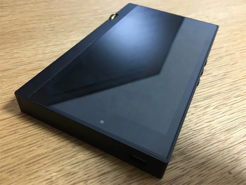 前面の面積だけであればiPhone6sより一回り小さいですが、厚みは2倍弱あります。 DAPとしては大柄な部類ですが、片手で操作できる範疇に収まっています。