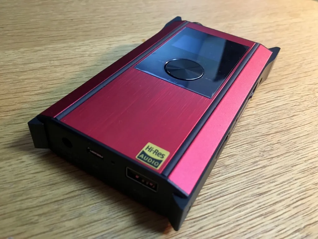 表面には4つのボタンと小さなディスプレイ。UIは昨今のDAPのそれだとは思えない非常にシンプルなもの。簡素で分かりやすいのはいいのですが、項目の操作や決定は側面のジョグダイアル、再生関連の操作は表面のボタンで行う形になるので、操作に統一性がなく、UXの面ではイマイチ。動作そのものはキビキビとしたものなので、慣れでカバーできる範疇ではありますが。