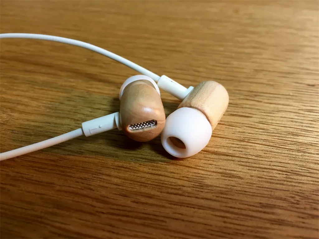 前述したように木製。表面はコーティングされているようで、光沢があります。かなり軽量。デザインは良くも悪くも地味ではあります。軽量かつ小柄なので、装着時のズレが起こりにくいのはグッド。