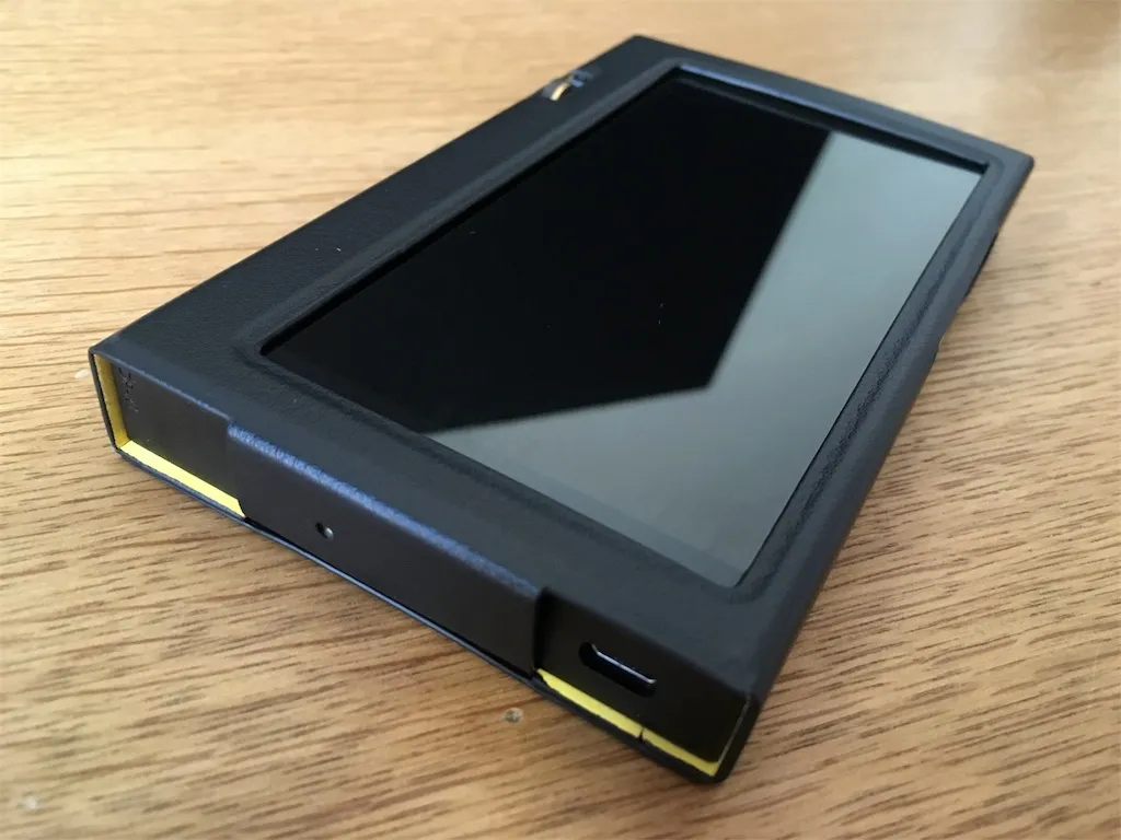 ボリュームダイヤル付近も切り抜かれており、DP-X1のダイヤル付近の独特なラウンド形状を活かしたデザインに。操作性も失われていません。
