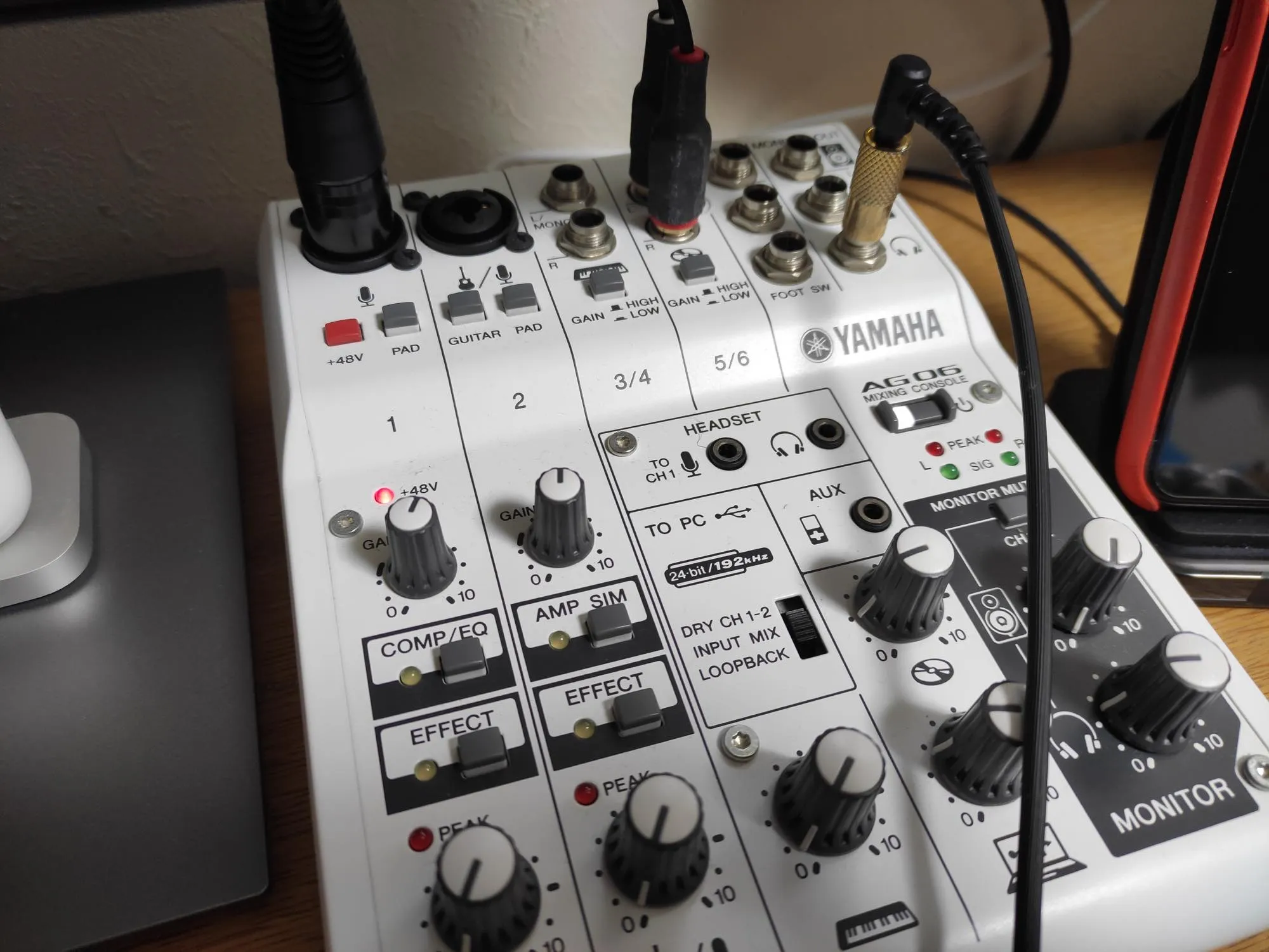 仕様ではDisplayPortからの入力のみ音声信号を分離してラインアウトするように読めるが、USB-C、HDMIの場合でも問題なく音声が出る。ここからオーディオミキサーとしても使えるYAMAHAのAG06にラインインするととても使い勝手がよくなった。