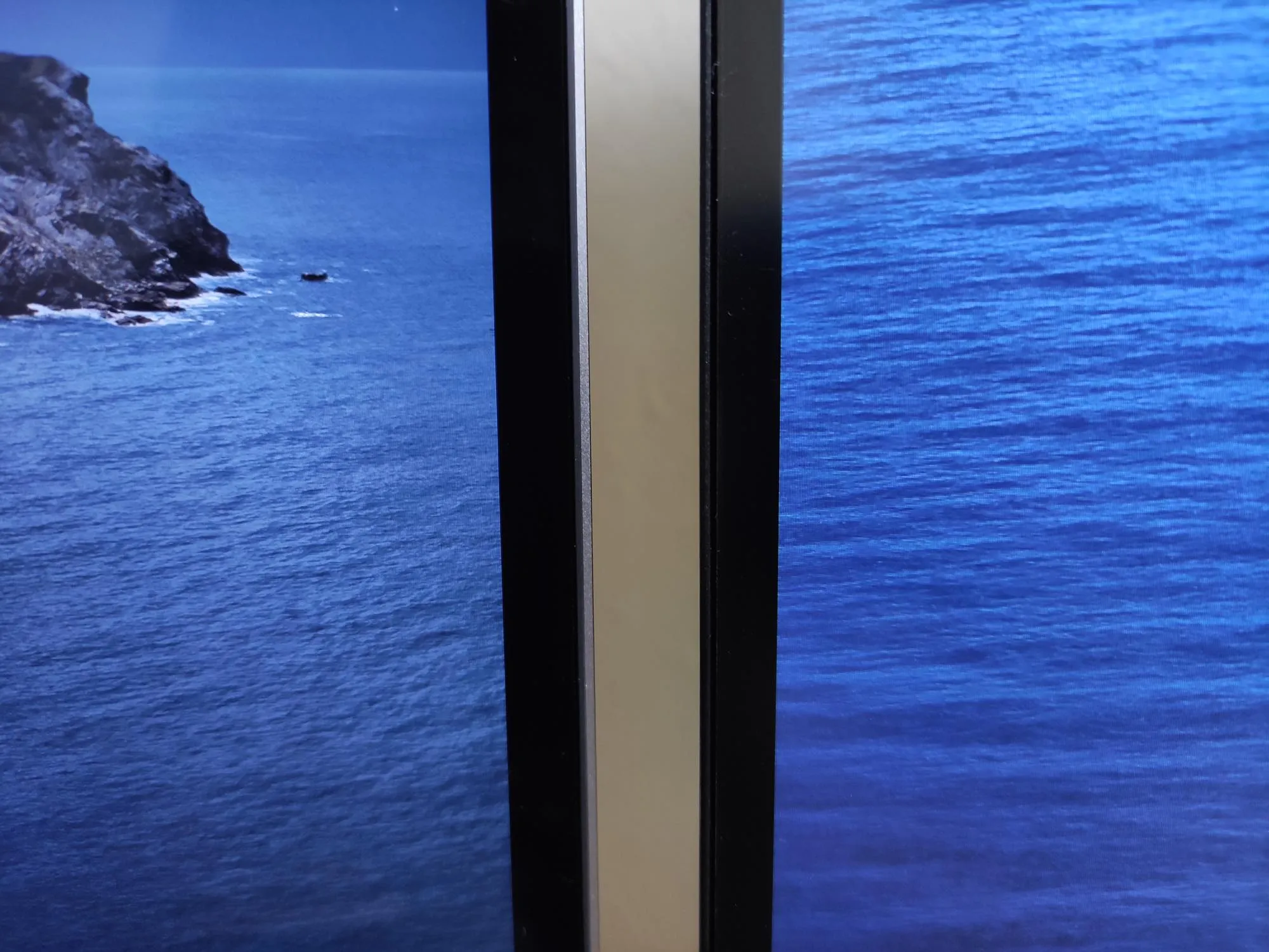ベゼルはかなり細め。MacBook Pro 13インチのベゼルと同じくらい。ディスプレイ部とベゼルがツライチなのでスッキリした見た目。