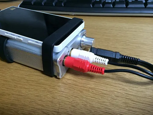 見た目が「ポータブルオーディオ機器」から完全に乖離しました。人前で出すのがちょっと恥ずかしいレベル。RCAコネクタなのでラインアウトっぽいですが、しっかりボリュームの影響を受けるので、イヤホン、ヘッドホンを繋いでもOKです。白赤のRCAコネクタが似合ってなくて格好良くないので、そのうちメタリックなコネクタに変えちゃおうと思います。そんなことするなら面倒がらずに秋葉原行って自作すればよかったかもしれませんね…