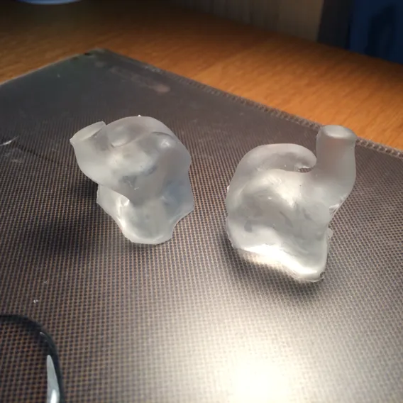 こんな風に。カナル部は第二カーブで切り落とし、あとはお好みで短くしていきます。個人的にはやや短めが好きですね。掛かっている液体は表面コーティングの為の水性ニス。なのですが、水で希釈したものでは弾かれてしまいました。表面をヤスリで荒らすか、濃いめで使えば問題なさそうです。水性ニスではなく、溶かしたロウにくぐらせてコーティングと厚み出しをするのが定番のようですがw ここで入念にコーティングしすぎると必要以上に厚みが出てフィット感が悪くなるのでほどほどに。