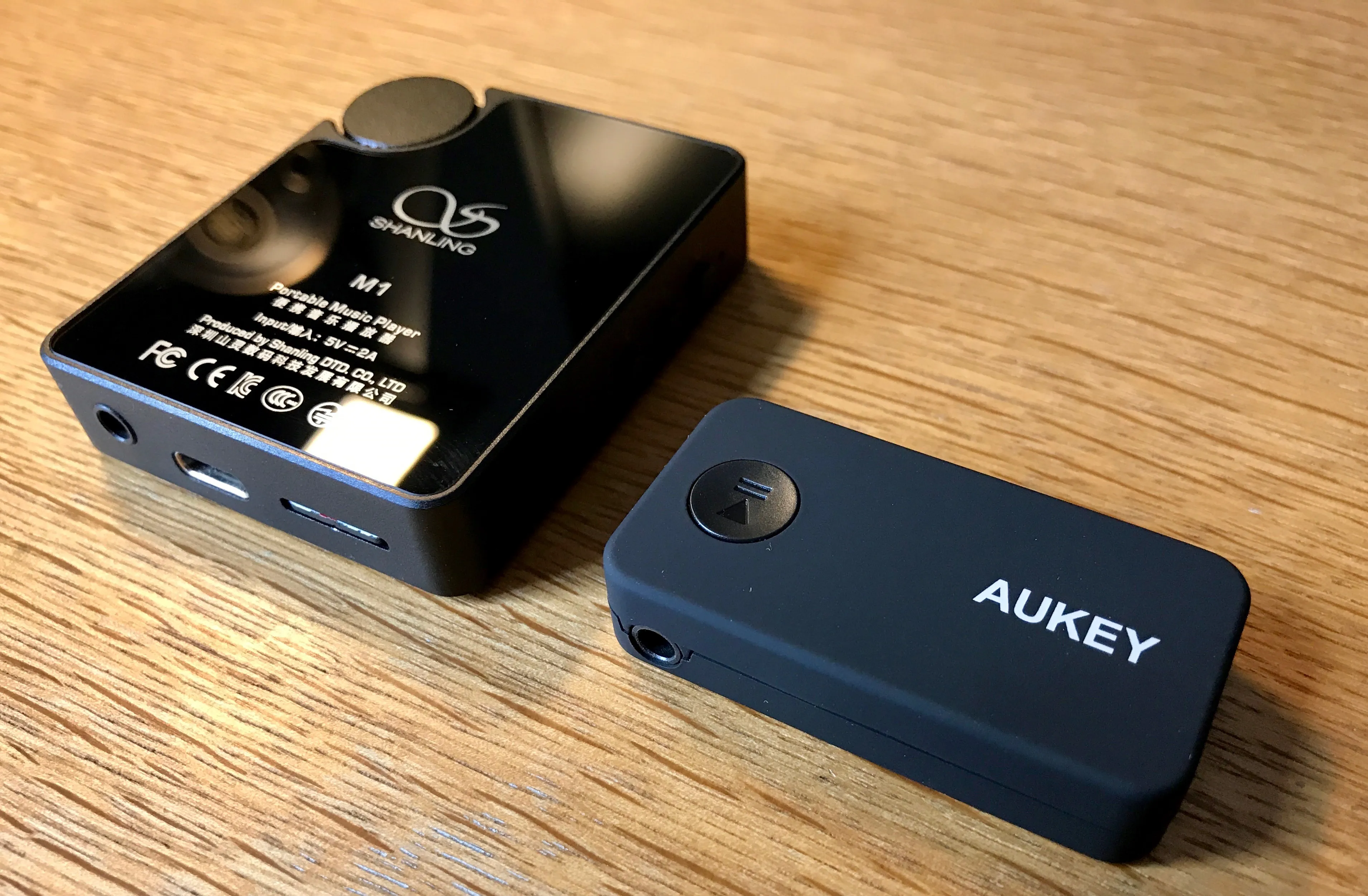 サイズはとてもコンパクト。Shanling M1と比べても半分程度。表面はラバーコーティングのようで、手触りはさらさらとしています。