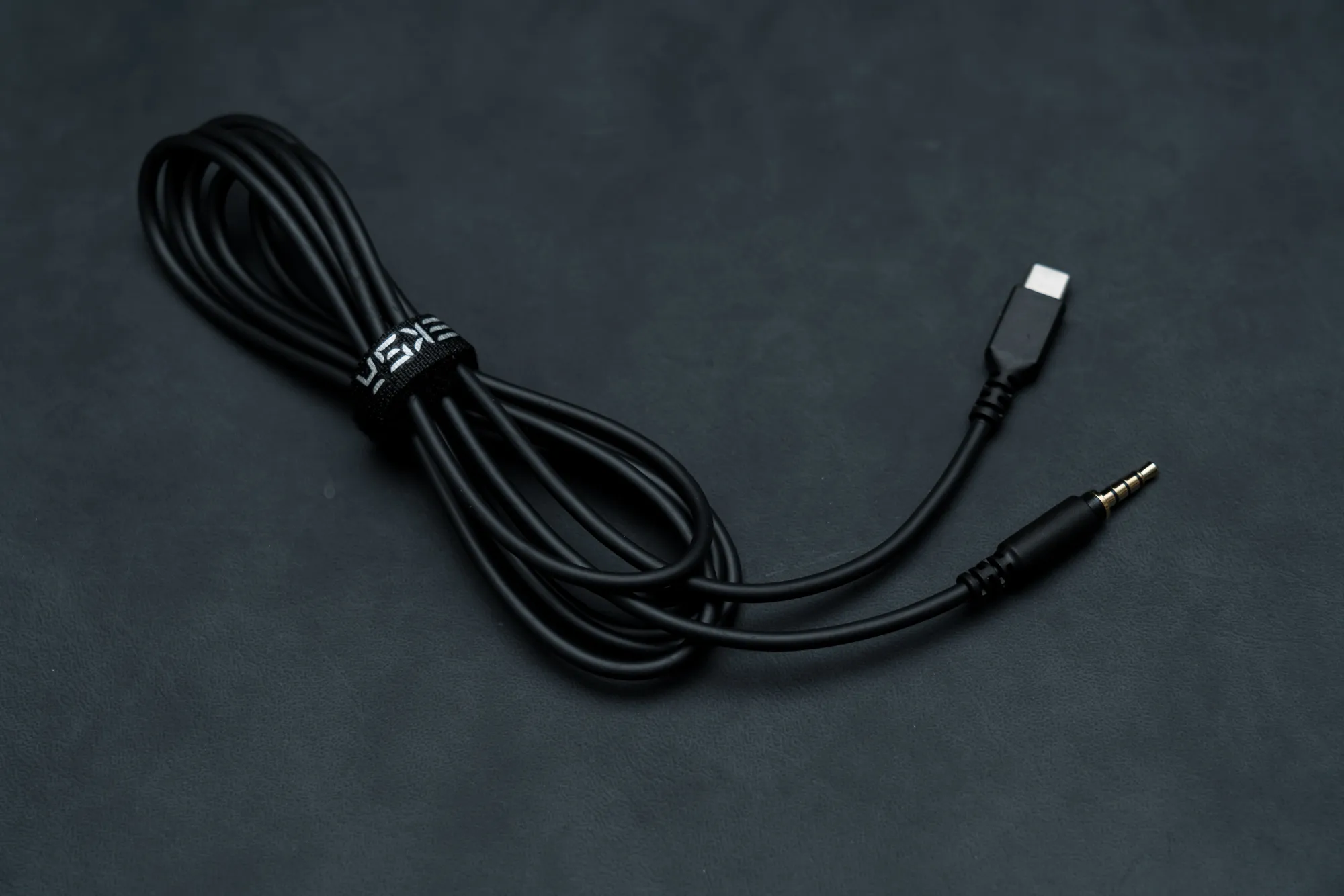 USB-C - 3.5mmマイク付きステレオミニケーブル。上記USBケーブルで接続できない場合に使用するケーブルです。