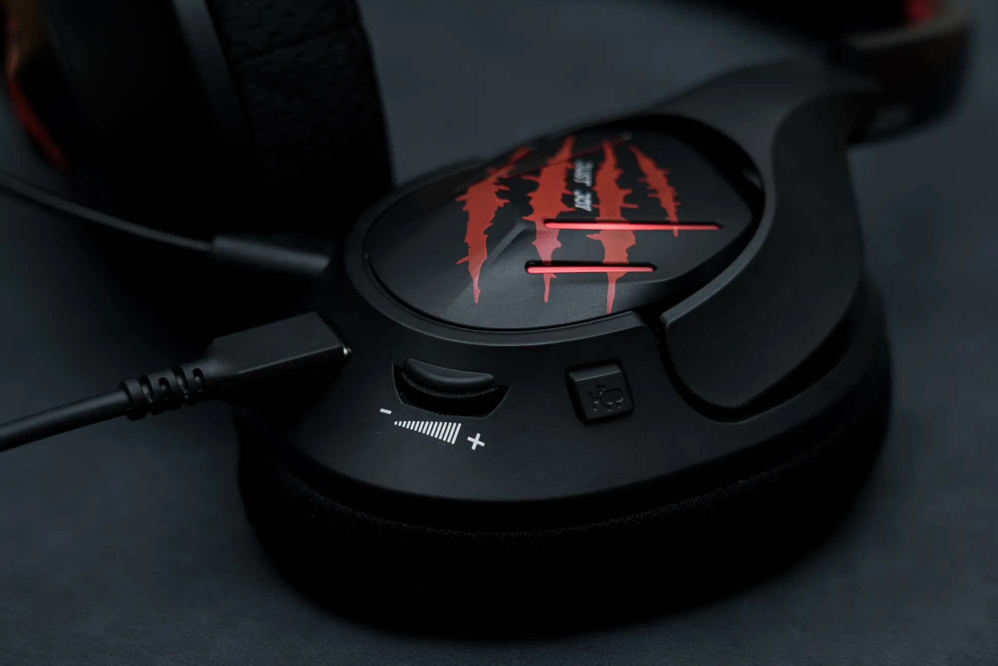 全体的にチープさをどうしても感じてしまいますが、3000円であれば文句は言えないですね。ただ、今後デザイン面を改良することがあれば、ハウジング側面の爪痕のようなデザインはやめた方がいいような。これが絶妙にダサい。これさえなければ落ち着いたデザインで、自宅でのゲーミングだけでなく、出先やオフィスでのWeb会議などに使いやすいように思います。光るけど。