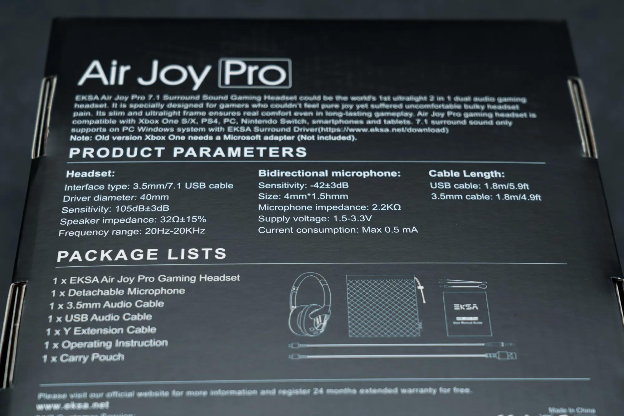 実売3000円前後と安価な製品ですが、思ったよりもしっかりした外箱です。「Pro」と記載がありますが、「Pro」でない「Air Joy」は多分ないと思う。