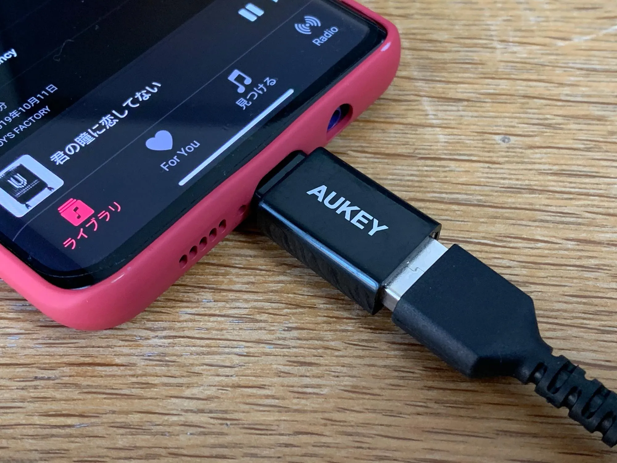 付属のUSB-C - USB-Aケーブルを使って、スマートフォンとデジタル接続できるか試してみました。まずはAndroidであるMi Note 10 Lite。変換コネクタを挟むことでUSBオーディオデバイスとして認識しました。