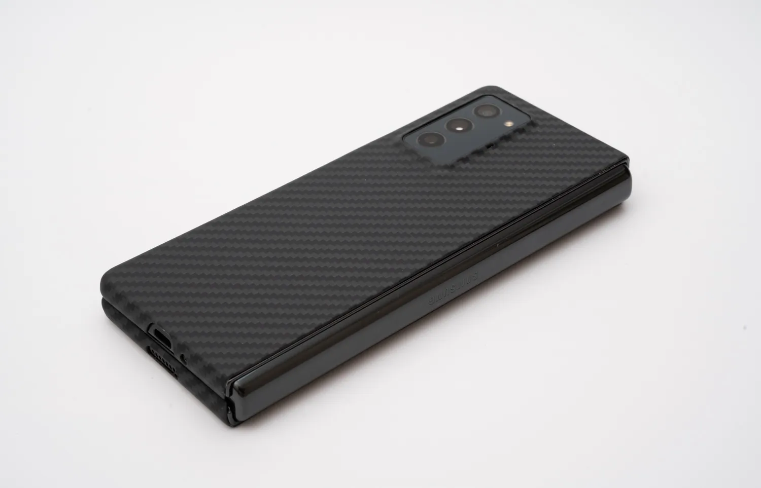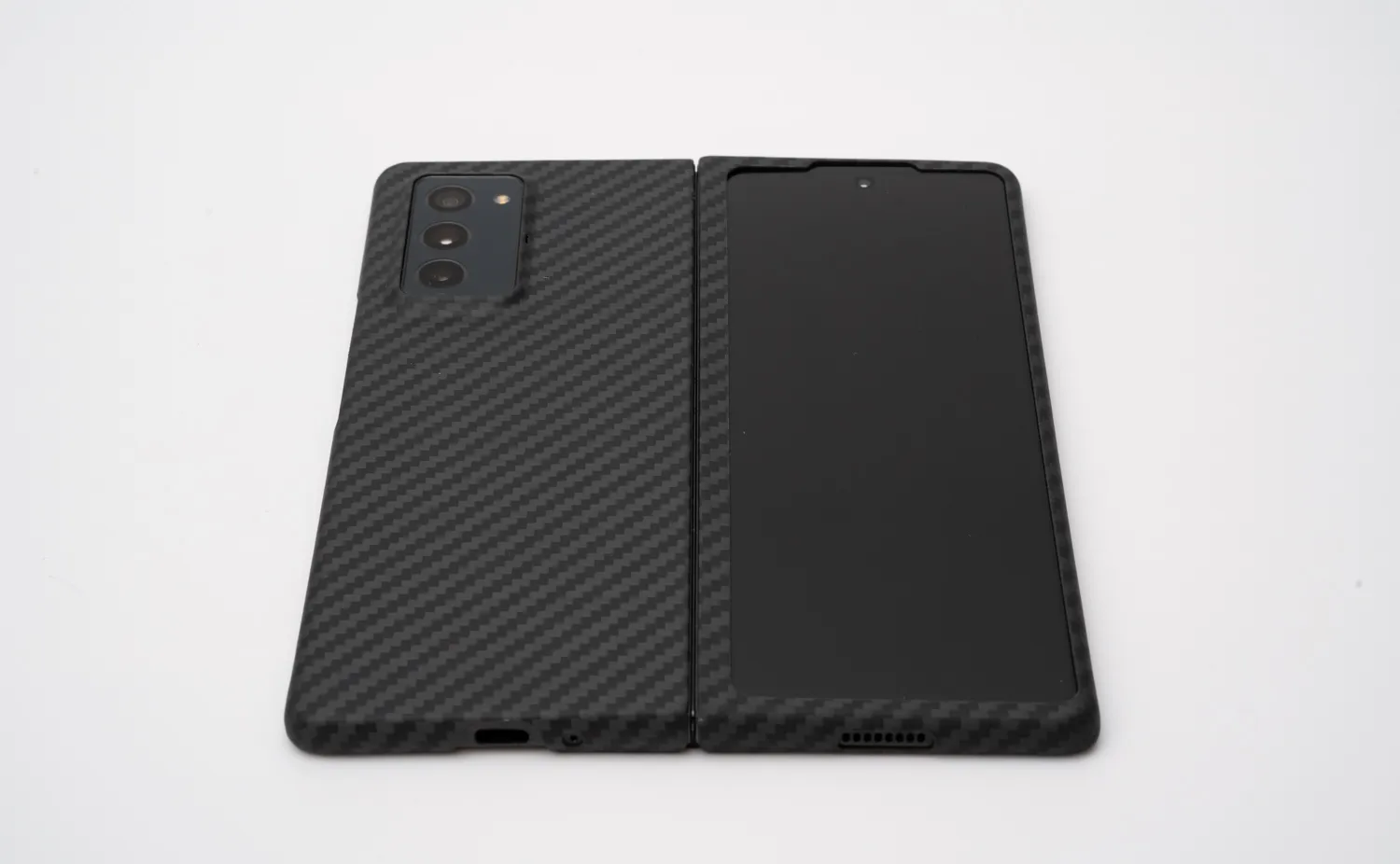 折りたたむと通常のスマホの2倍近い厚みとなるGalaxy Z Fold2。ケースはできるだけ薄いものを選びたいところです。購入したのは以下のケース。表側と裏側ケースのセットで3000円ほどでした。Fold3用も発売されていますね。