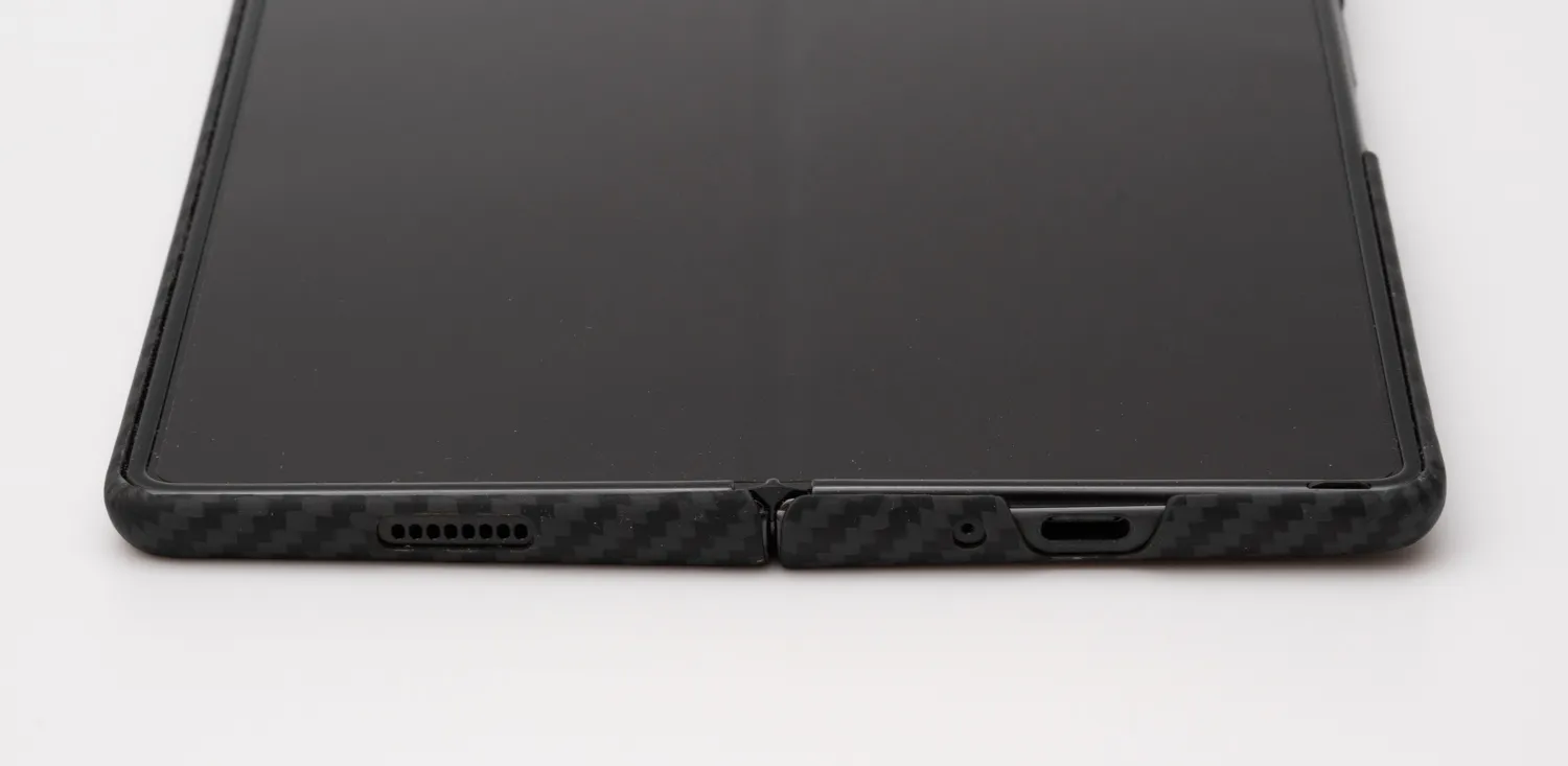 ボタンや端子、スピーカー等の切り抜き部のクオリティも文句なし。以前使用していたSpgienのケースはUSB-Cケーブルのコネクタが干渉し差し込めない酷い出来でしたが、このケースではもちろんそんなことはありません。