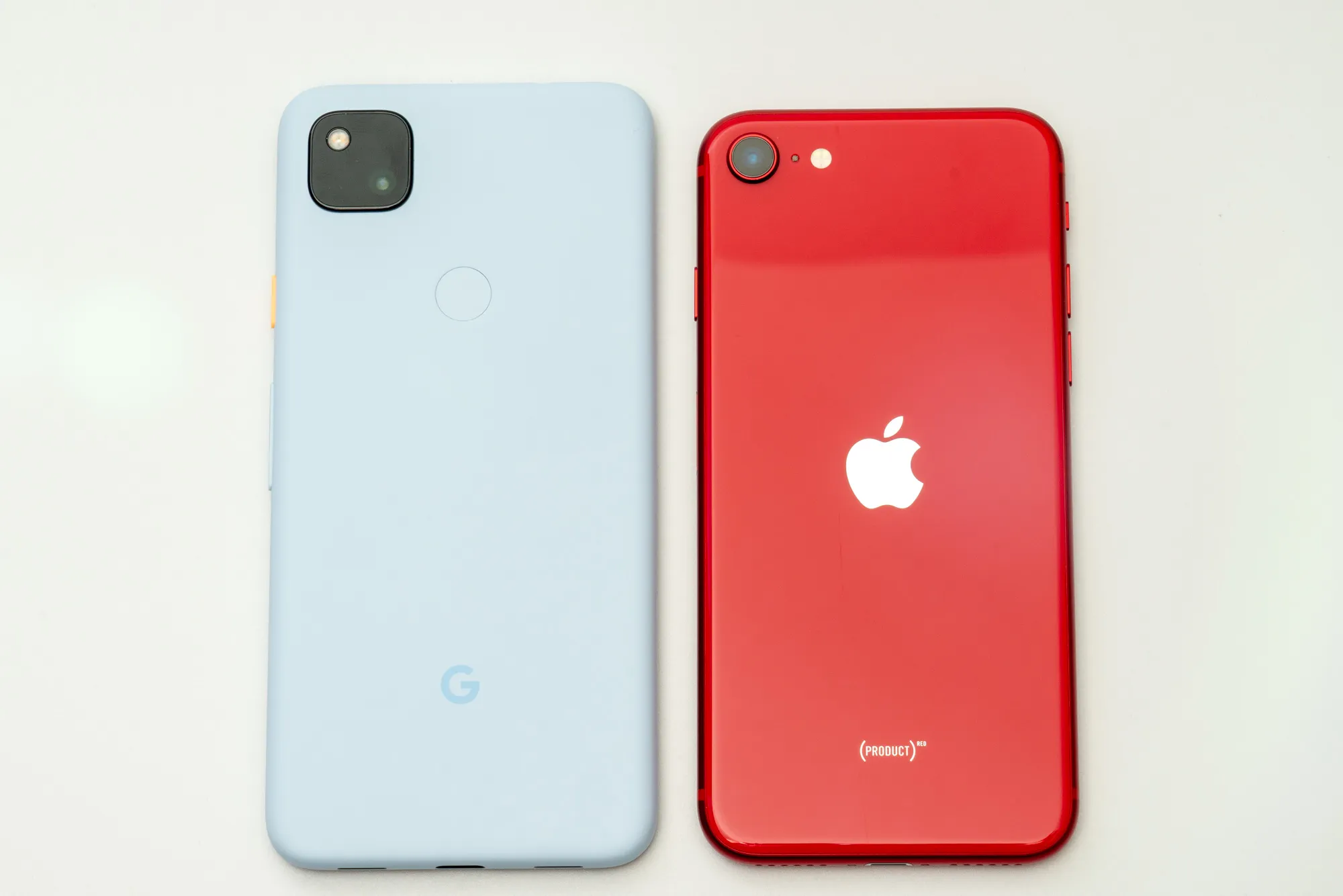 同価格帯のライバルであるiPhone SE 第2世代と並べてみました。横幅はほぼ同じですが、高さ方向はややPixel 4aの方が大きいです。