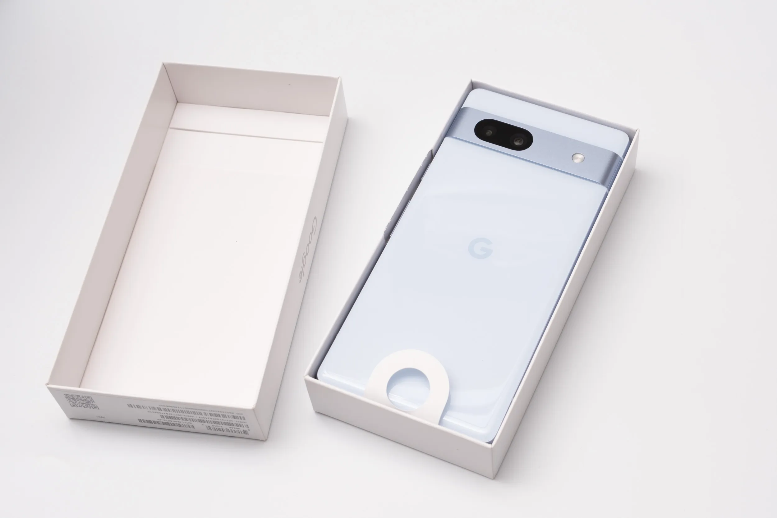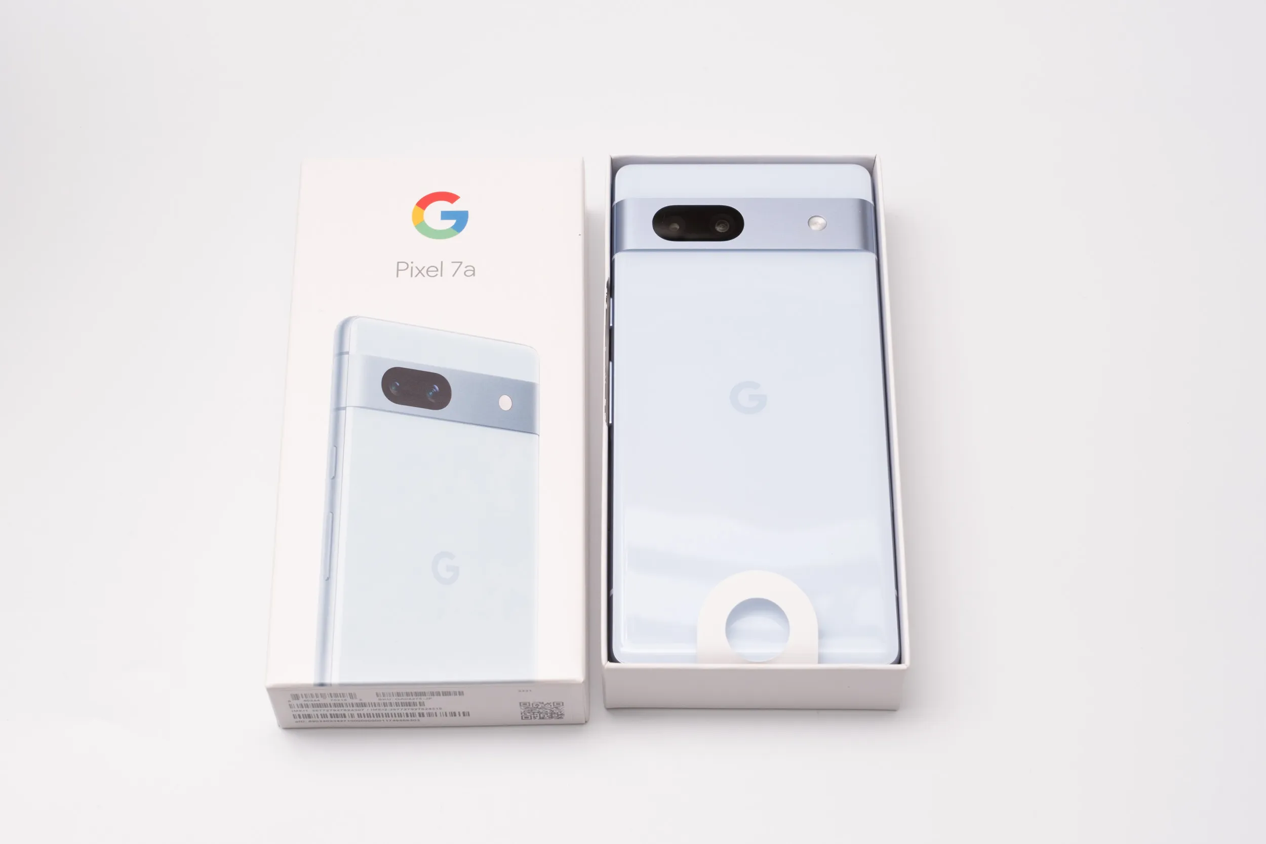 購入したのはブルーの「Sea」。外箱はいつものPixelですね。「Coral」カラーのみYoutube Premium1年分という魅了的な特典が付いていますが、ここは欲しい色を選びました。