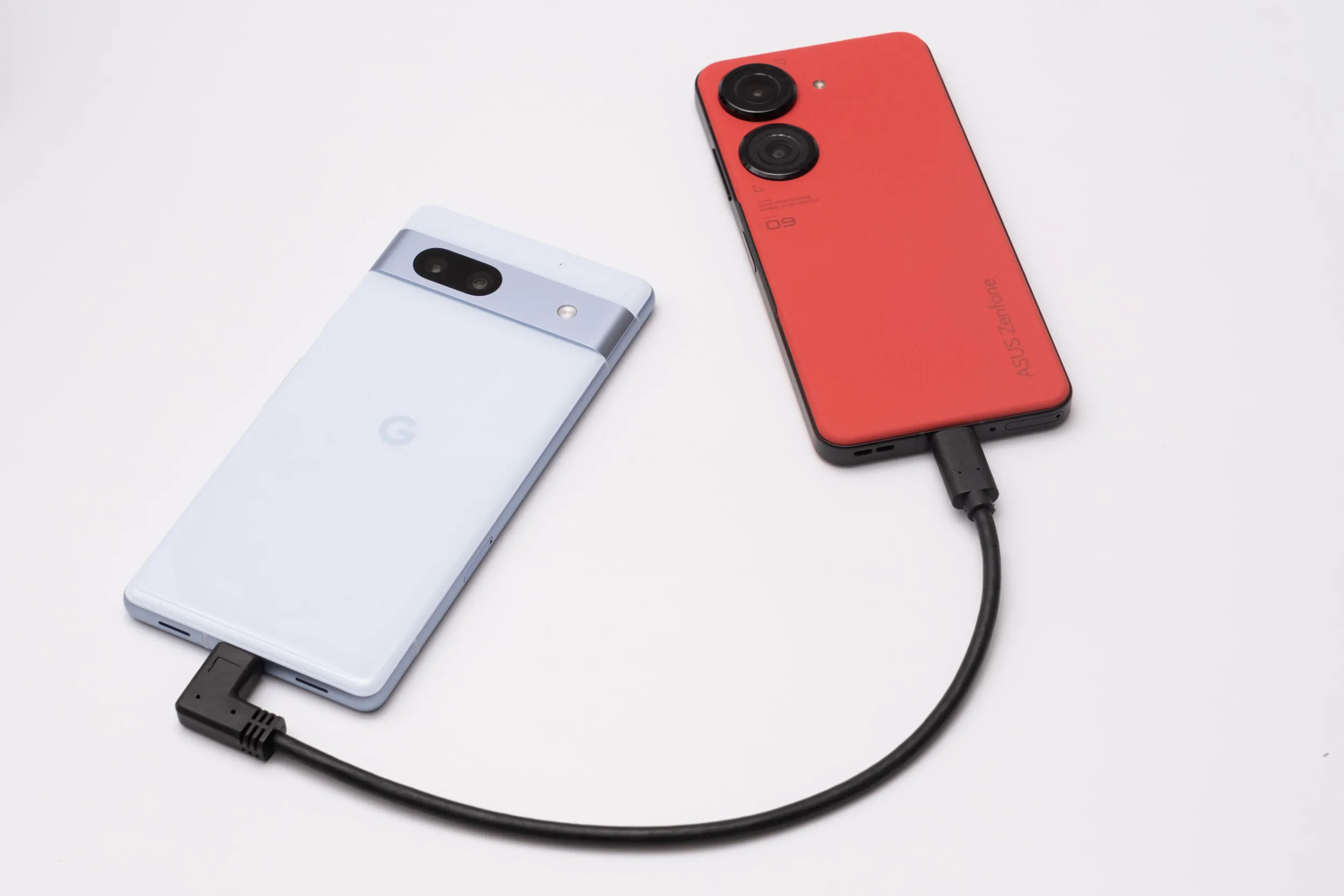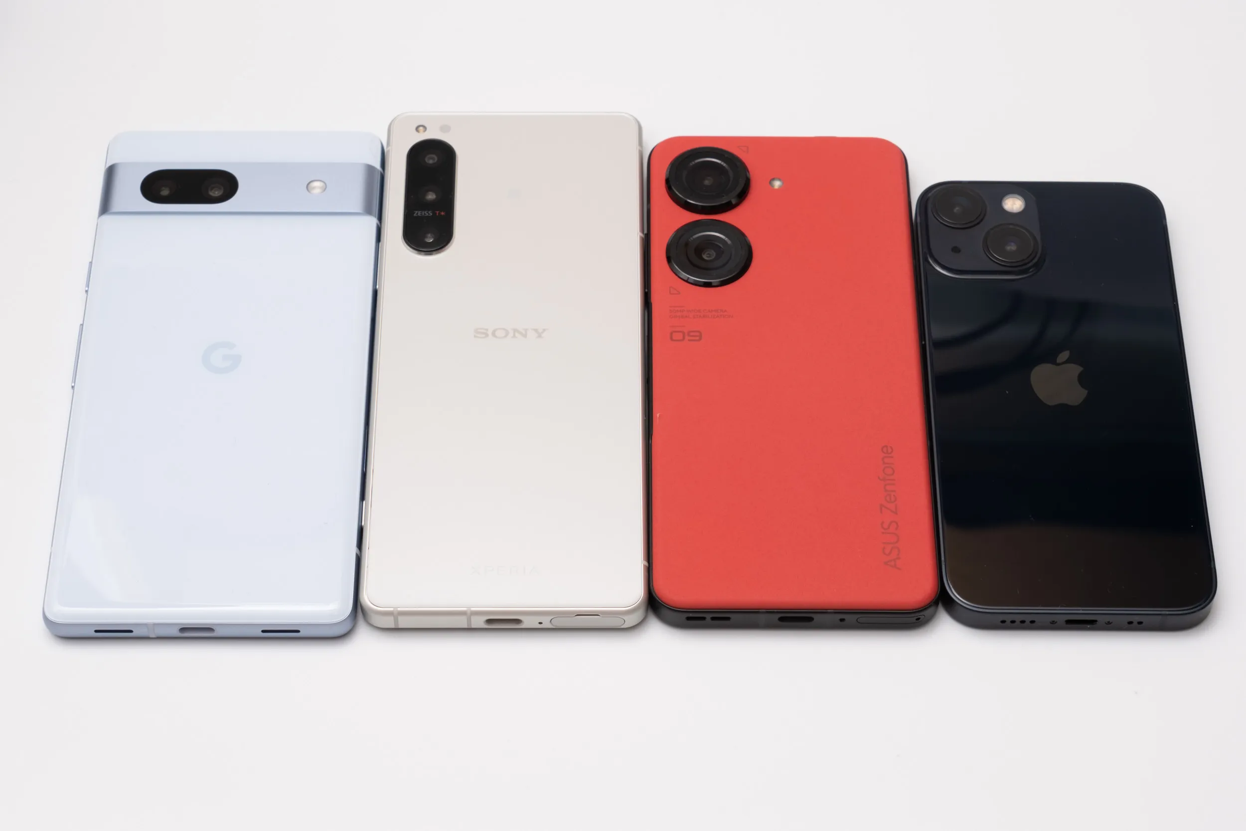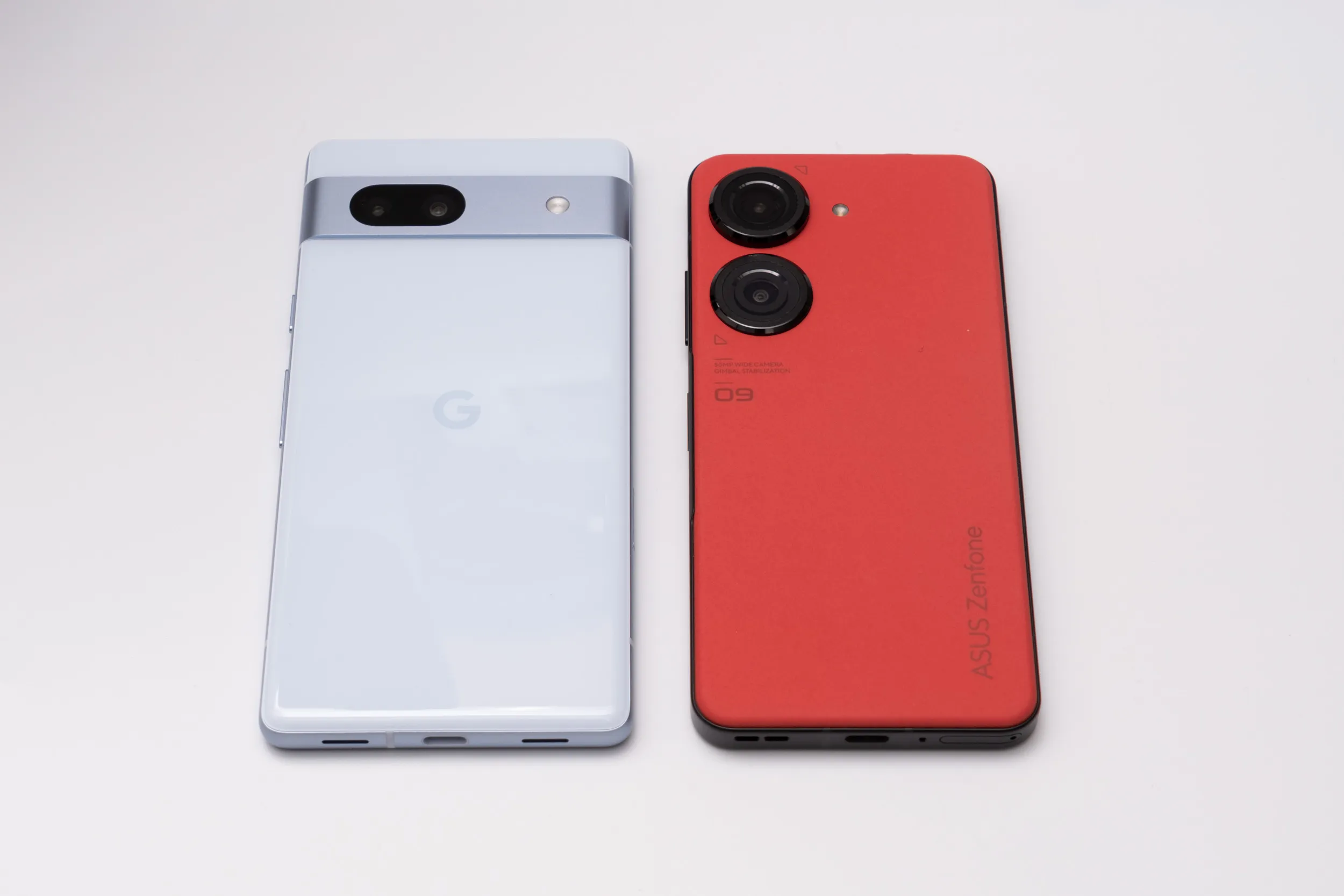 コンパクトハイエンドスマホとして人気のZenfone 9と並べてみました。Pixel 7aは6aと同様に比較的コンパクトなボディ。
