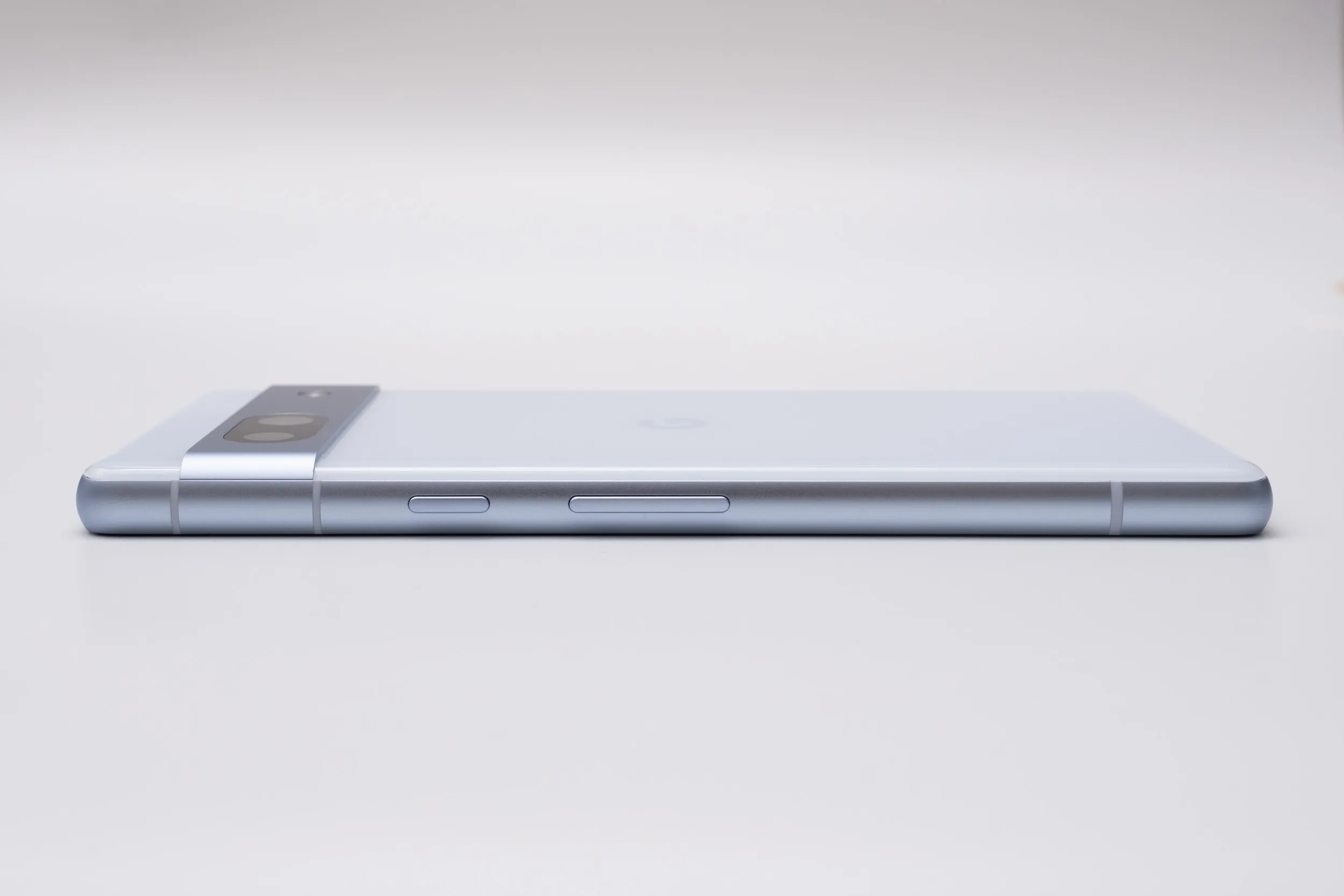 向かって右側面には電源キー、ボリュームキー。Pixelの特徴である、電源キーがボリュームキー上部にあるデザイン。一般的なAndroidスマートフォンとは逆の配置であり、慣れるまで違和感のある部分。