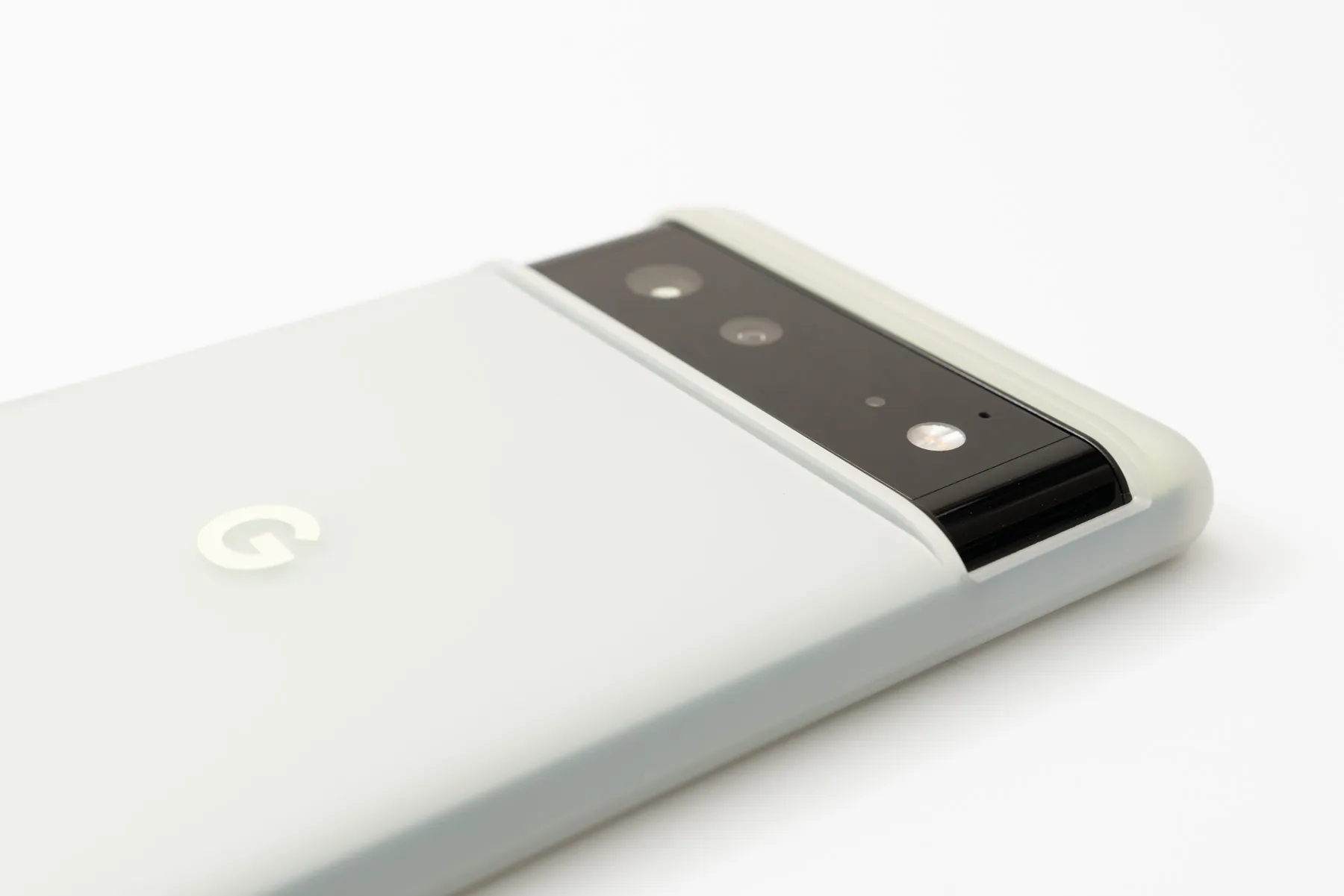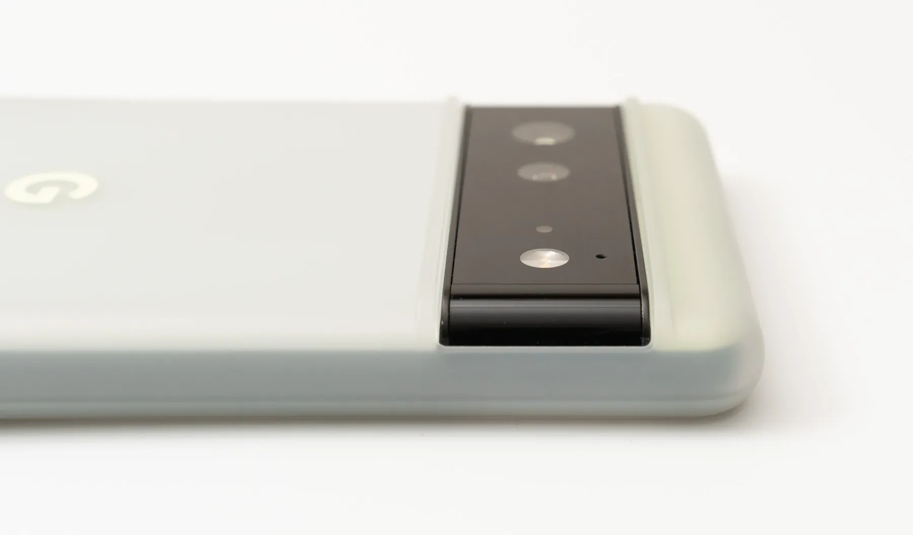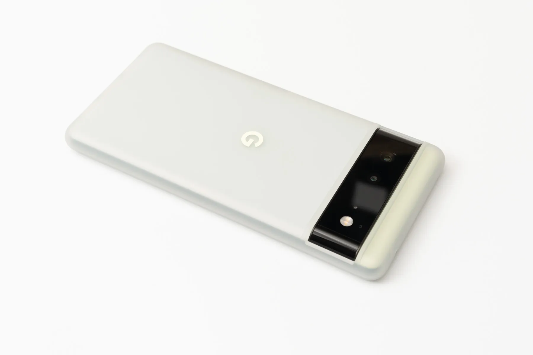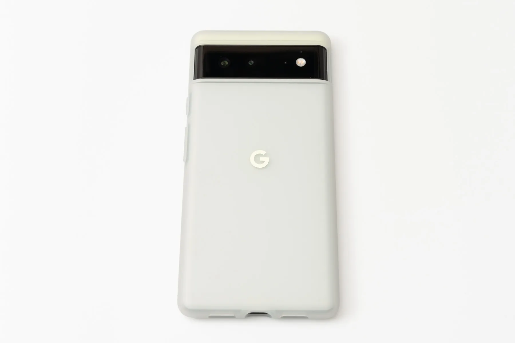 同じくグリーン系カラーである「Sorta Seafoam」のPixel6に装着。カメラ上部のアクセントカラーと、ケースのGマークの色味が合っており、純正ケースならではの統一感を感じられます。