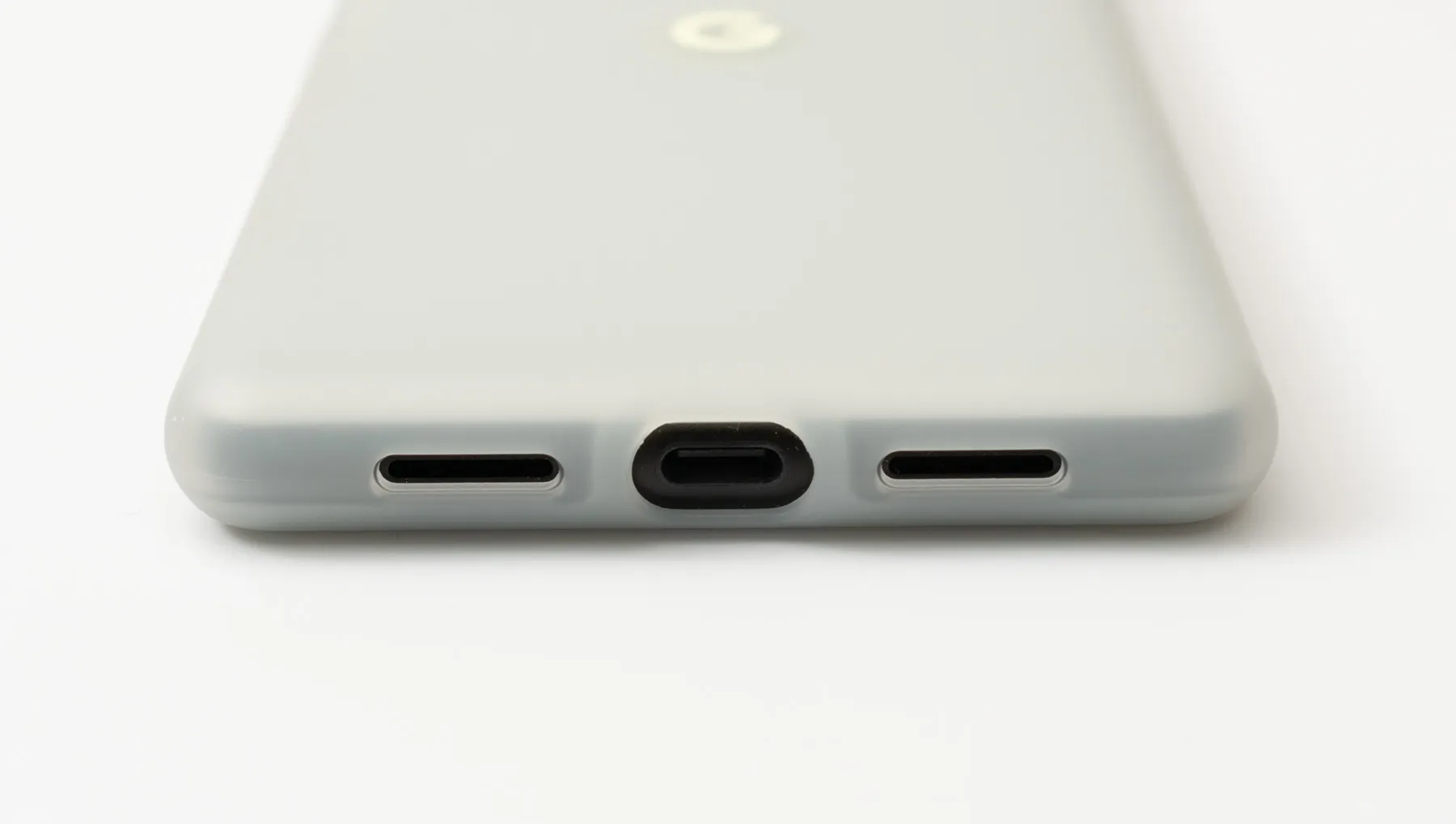 USB-C端子、スピーカー部分の切り抜きクオリティは良好。特にUSB-C部分については余裕を持ったサイズとなっており、手元にあるUSB-Cケーブルは全て干渉せずに差し込むことができました。