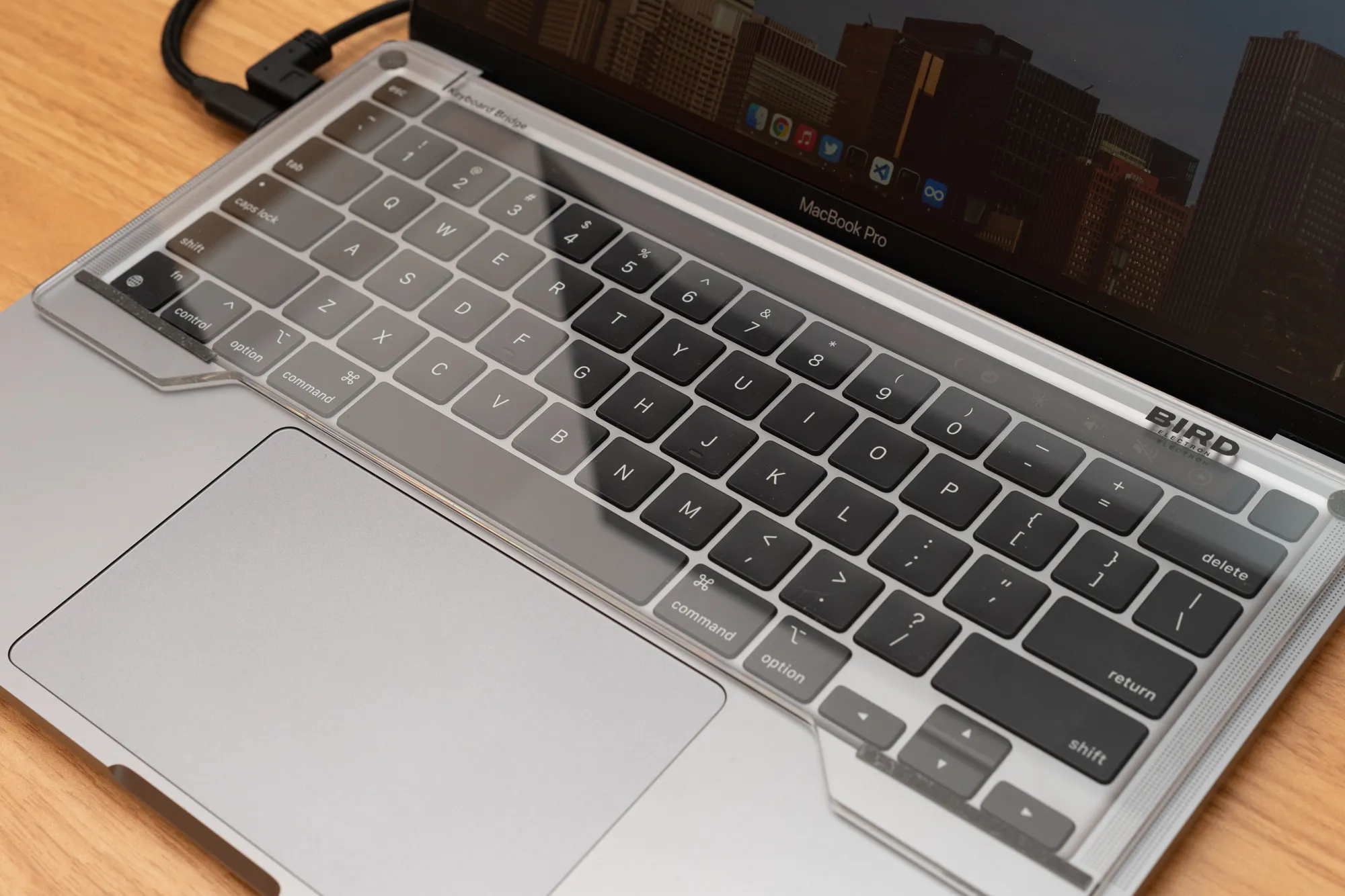 バード電子製のキーボードブリッジも購入しました。MacBook Proの本体キーの誤動作を防ぎ、上に置いたHHKBの安定性も高めてくれる、地味ながら便利な一品。4000円弱と高価ですが、バード電子公式オンラインショップにて、アウトレット品が2200円で販売されているのを見つけました。