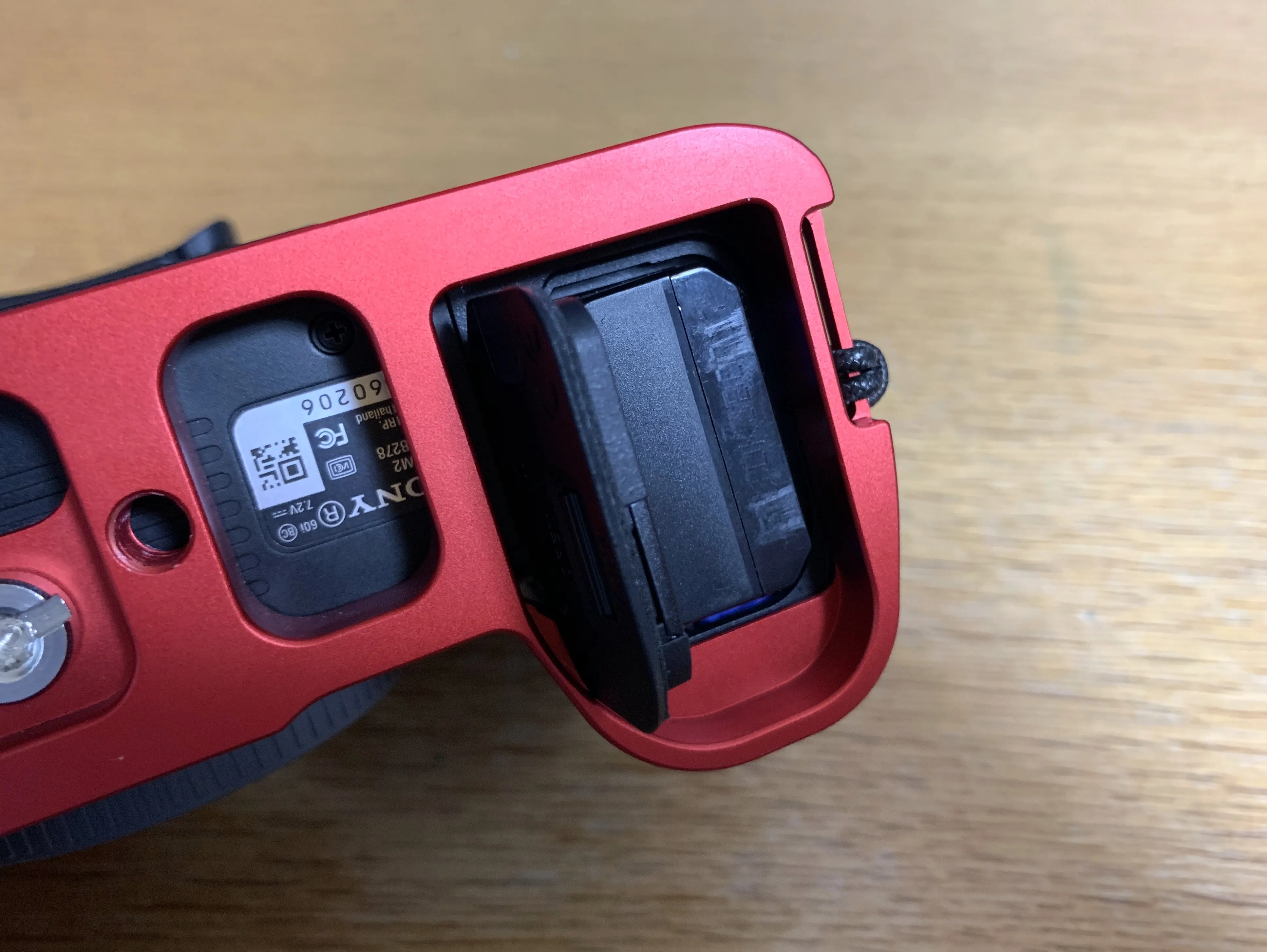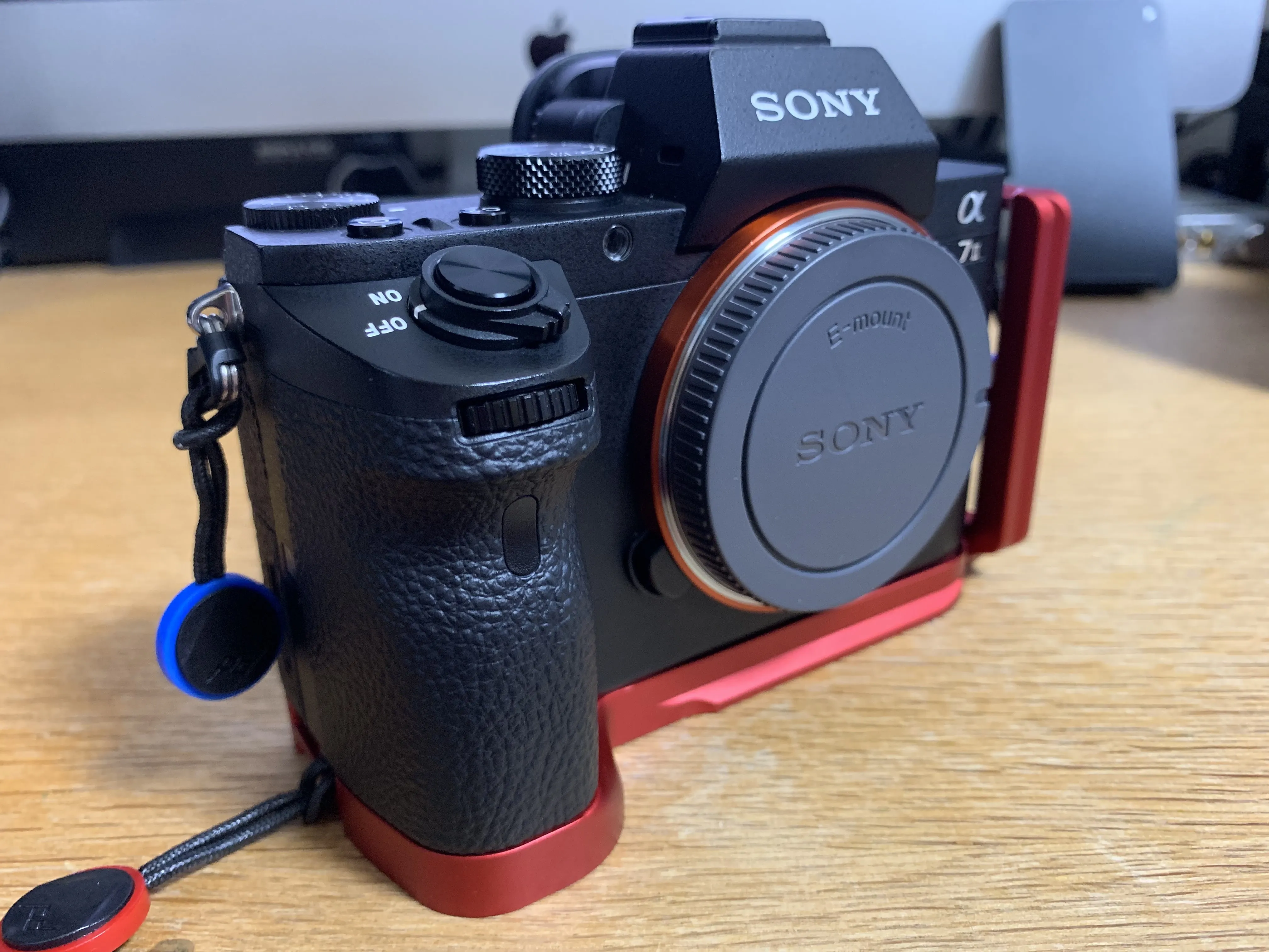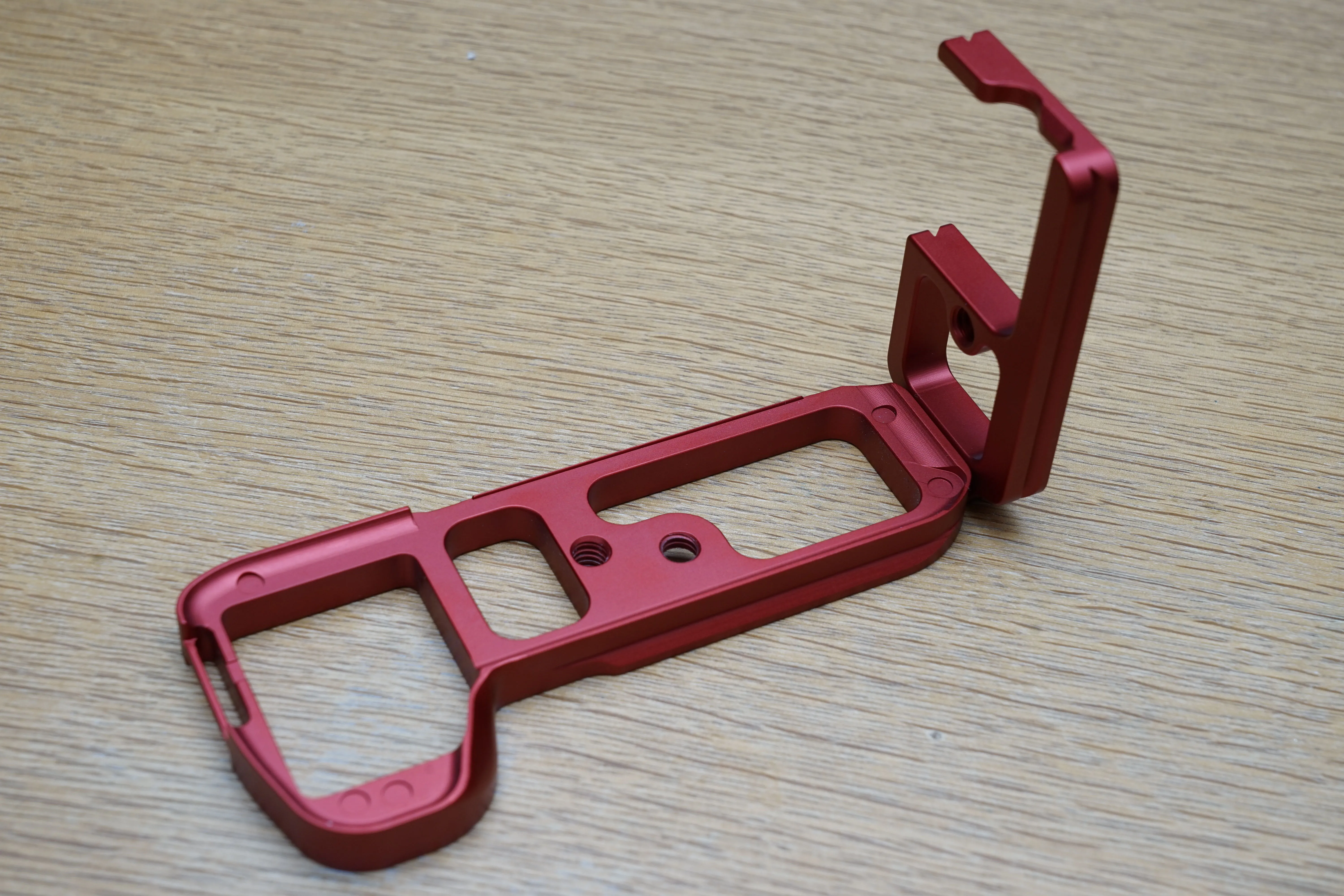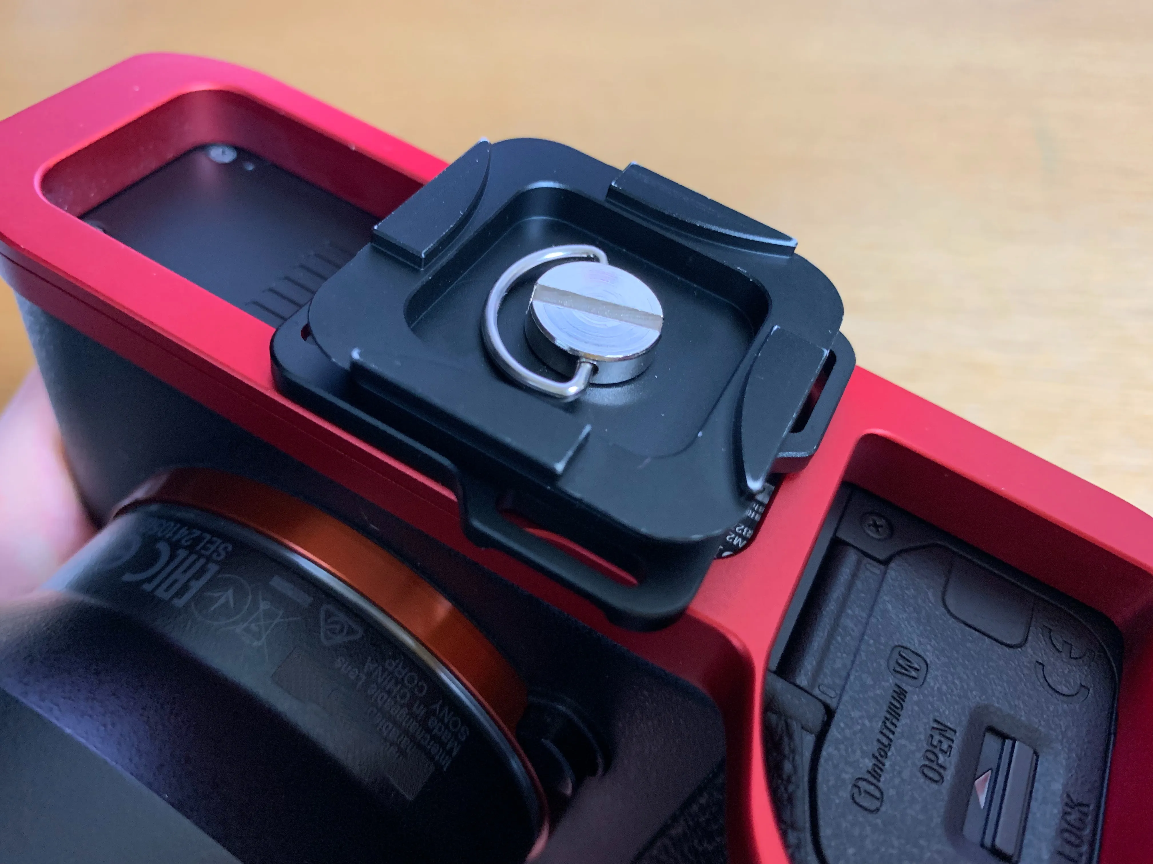 そこで、代替として三脚用クイックリリースブラケットを購入することにしました。色々なカメラで使える汎用品が安く買えますが、今回はα7II専用を謳う「INPON L型クイックリリースブラケット」を選択。カラーはブラック、シルバー、レッドが存在。あえてレビューの見当たらないレッドを購入してみました。2999円と、純正グリップの3分の1以下の値段で購入できます。