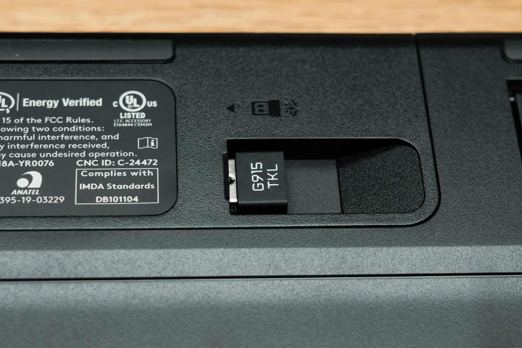 LIGHTSPEEDドングルはキーボード背面に収納できます。