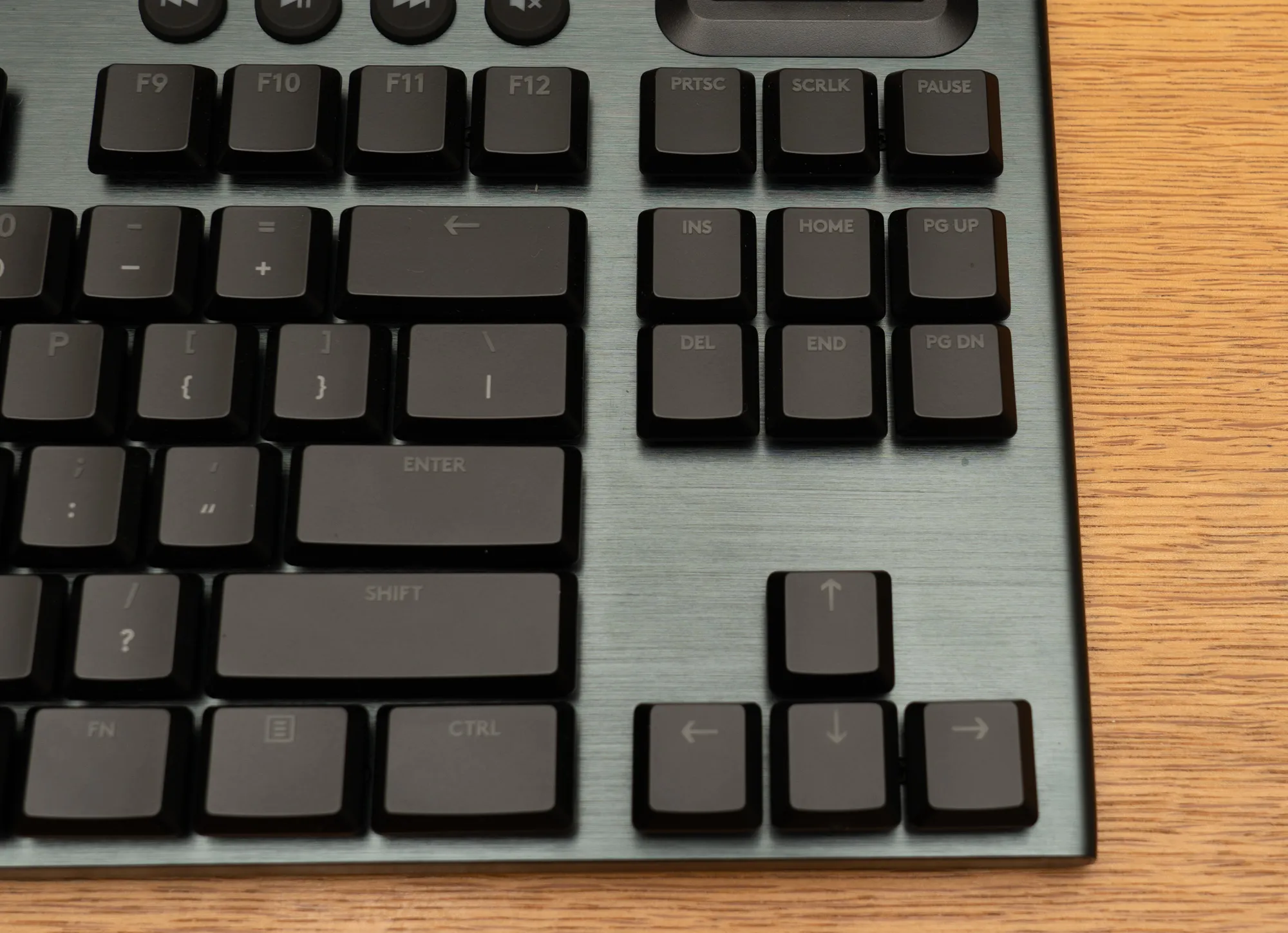 G915 TKLはテンキーレスキーボードです。全体的にキー配列に変なところはなく、英語配列としては一般的なものです。MacではKarabinerで左右のAltキーをCmdキー、WindowsキーをOptionキーに割り当てました。