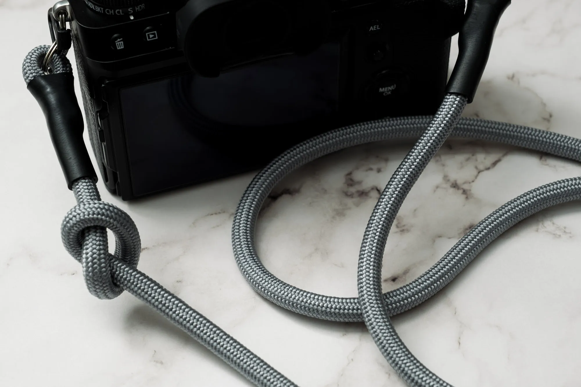 革のように固くなく、また嵩張らないのが特徴の丸紐ストラップ。軽くて柔らかく扱いやすいストラップですが、一般的なストラップのように伸縮機構を持たないため、自分の体格、カメラの持ち方(首に掛けたり、肩に掛けたり、たすき掛けにしたり、手首に巻いたり)に応じて長さを吟味する必要が。ルミエールカメラでは、1cm単位での長さ指定が可能。