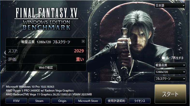 FINAL FANTASY XV WINDOWS EDITION ベンチマーク
