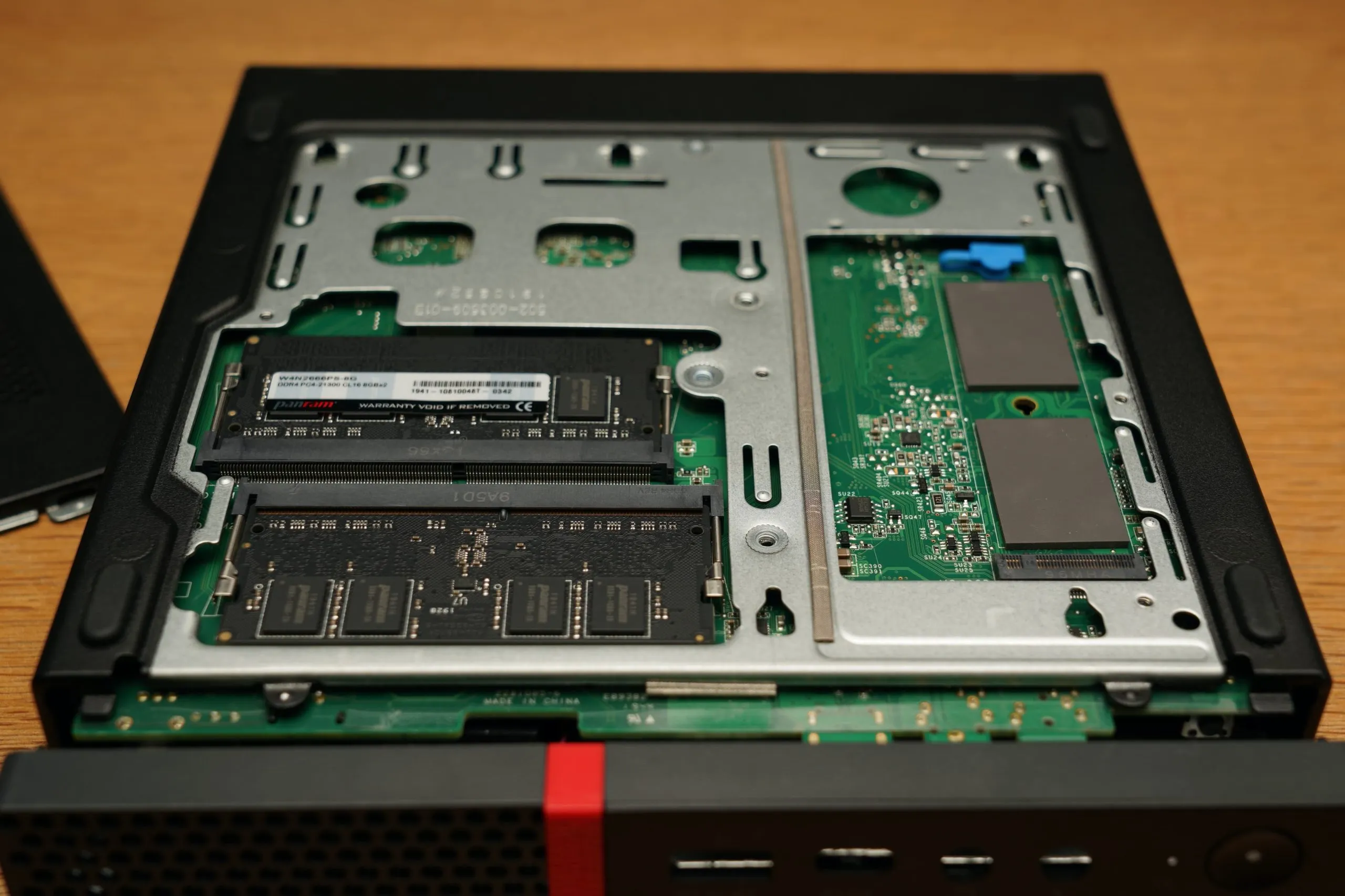 M75q-1のケースの裏側を開けるとメモリスロットとM.2スロットがあるので、ここに差し込むだけ。大々的にバラさなくて良いので簡単ですね。クリアランスがあまりないので、ヒートシンク付きM.2 SSDは避けた方が良さそうです。余ったSAMSUNGのメモリはメルカリにでも放り投げておこうかな、と思いつつとりあえずiMacに挿しておきました。iMacのメモリが36GBになりました。強い。