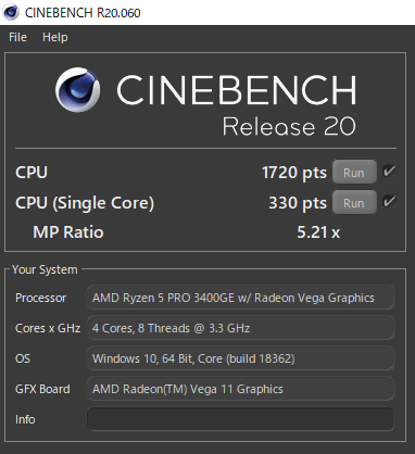 - AMD Ryzen 5 Pro 3400GE 4コア8スレッド 3.3GHz(ブースト時4.0GHz)