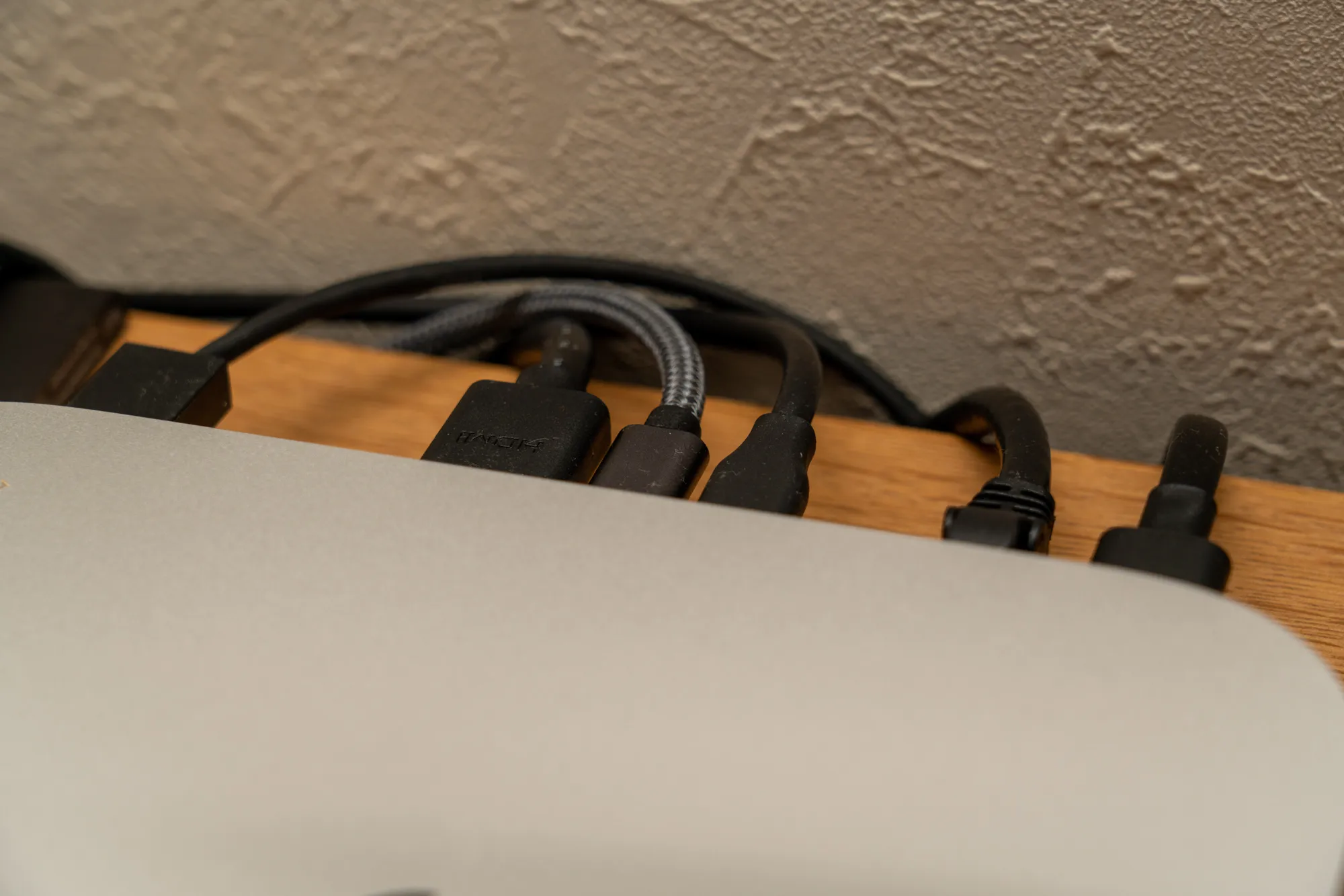 Mac miniの端子類は後方に固まっているので、頻繁に抜き差しする運用には不向きです。