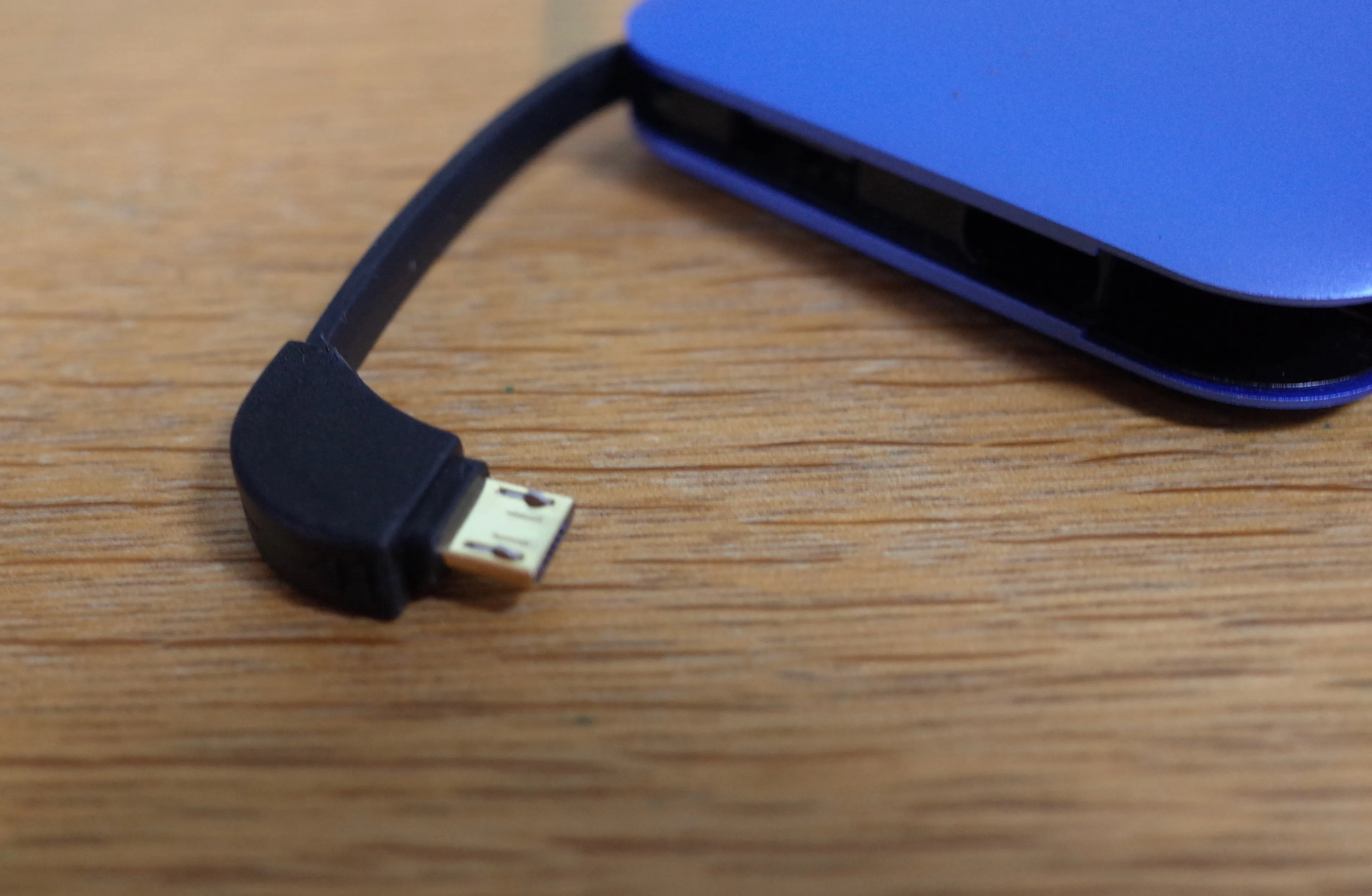 本体からmicroUSBケーブルが伸びます。ケーブルを別に持ち歩く必要がなくなるのでかなり便利。