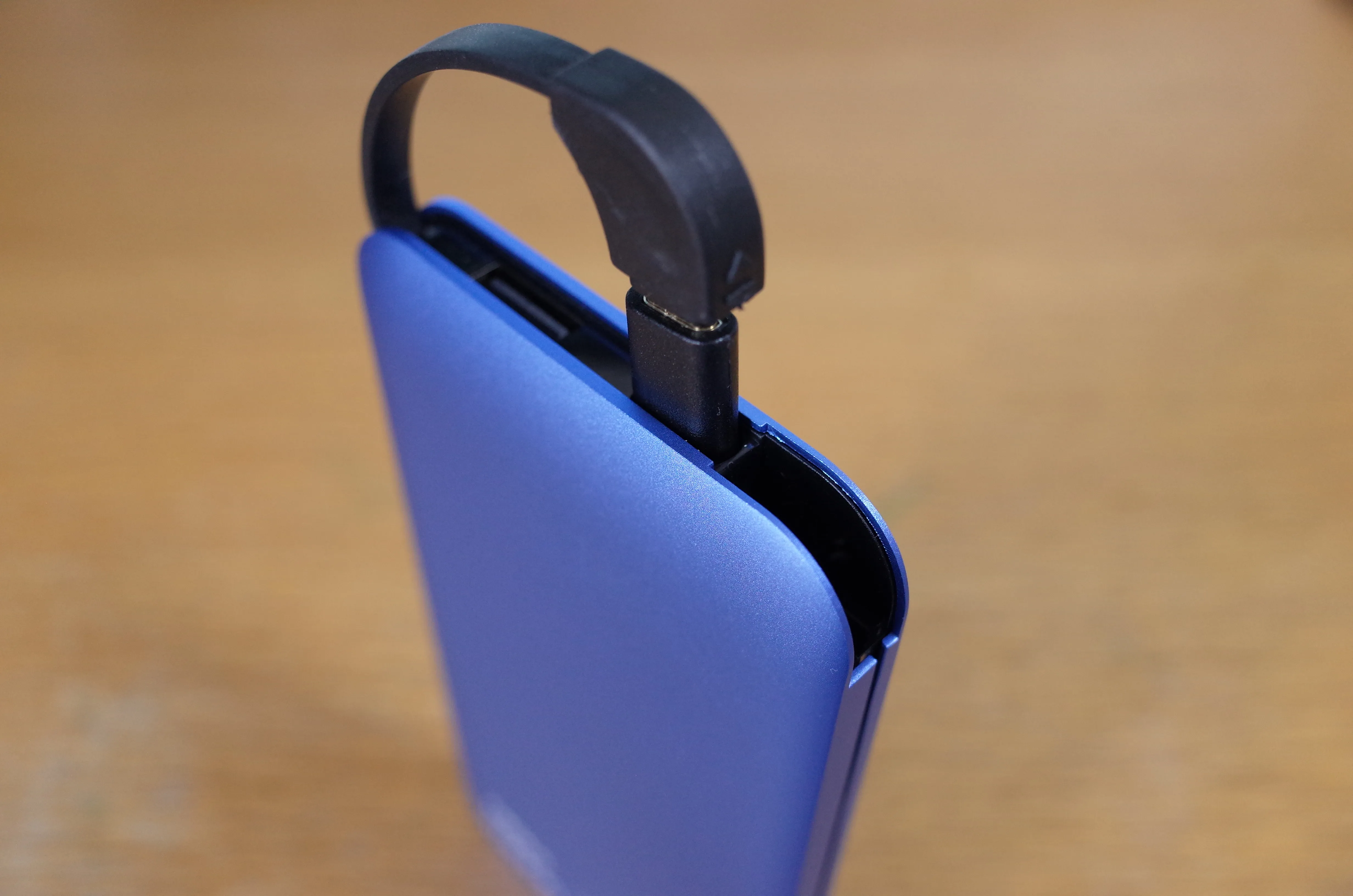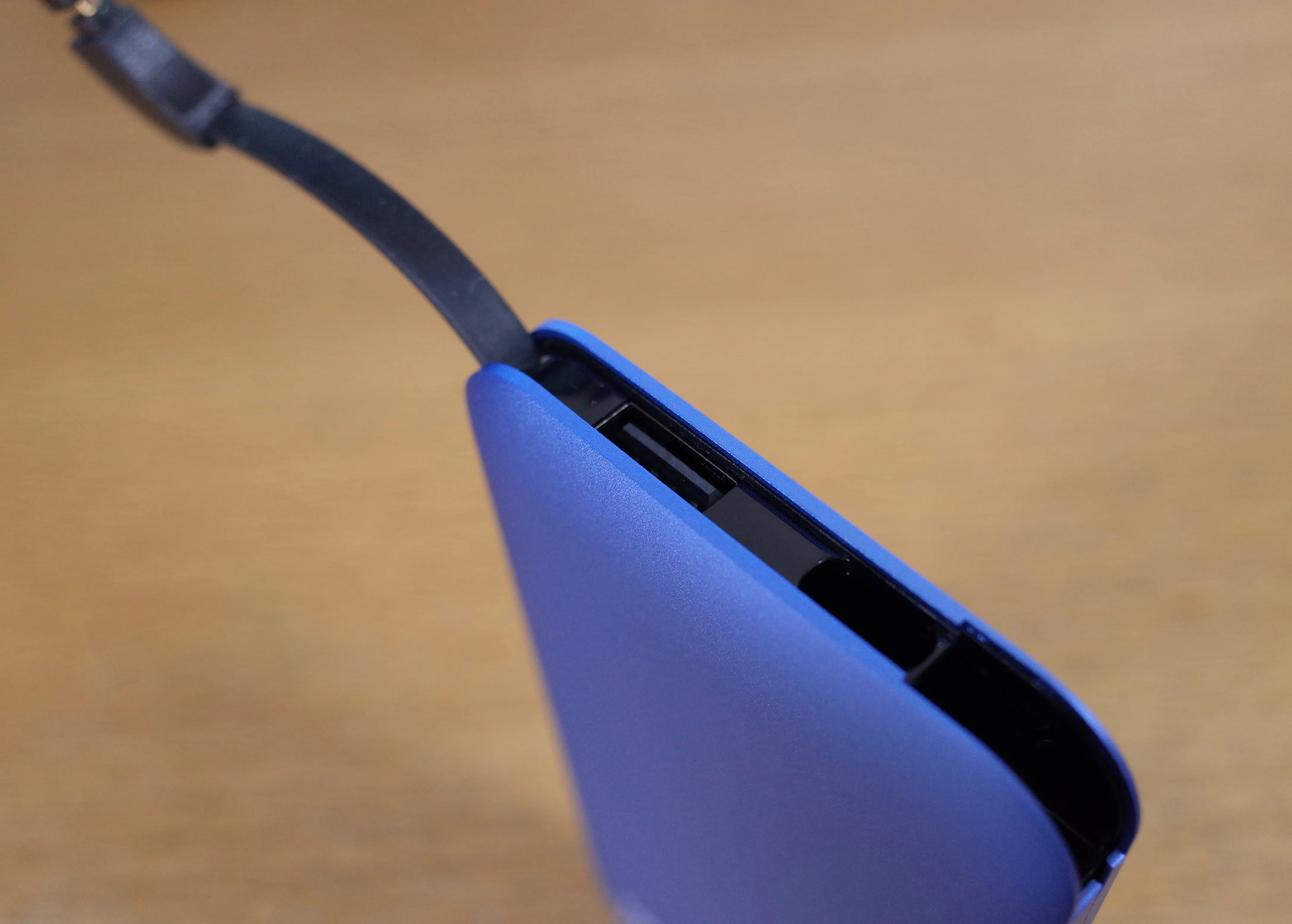 本体にはUSB端子がもう一つ。内蔵ケーブルと合わせて同時に二台のデバイスに給電が可能です。このUSB端子が内蔵ケーブルを展開せずに使える位置にあるともっと良かった。少し残念な点。
