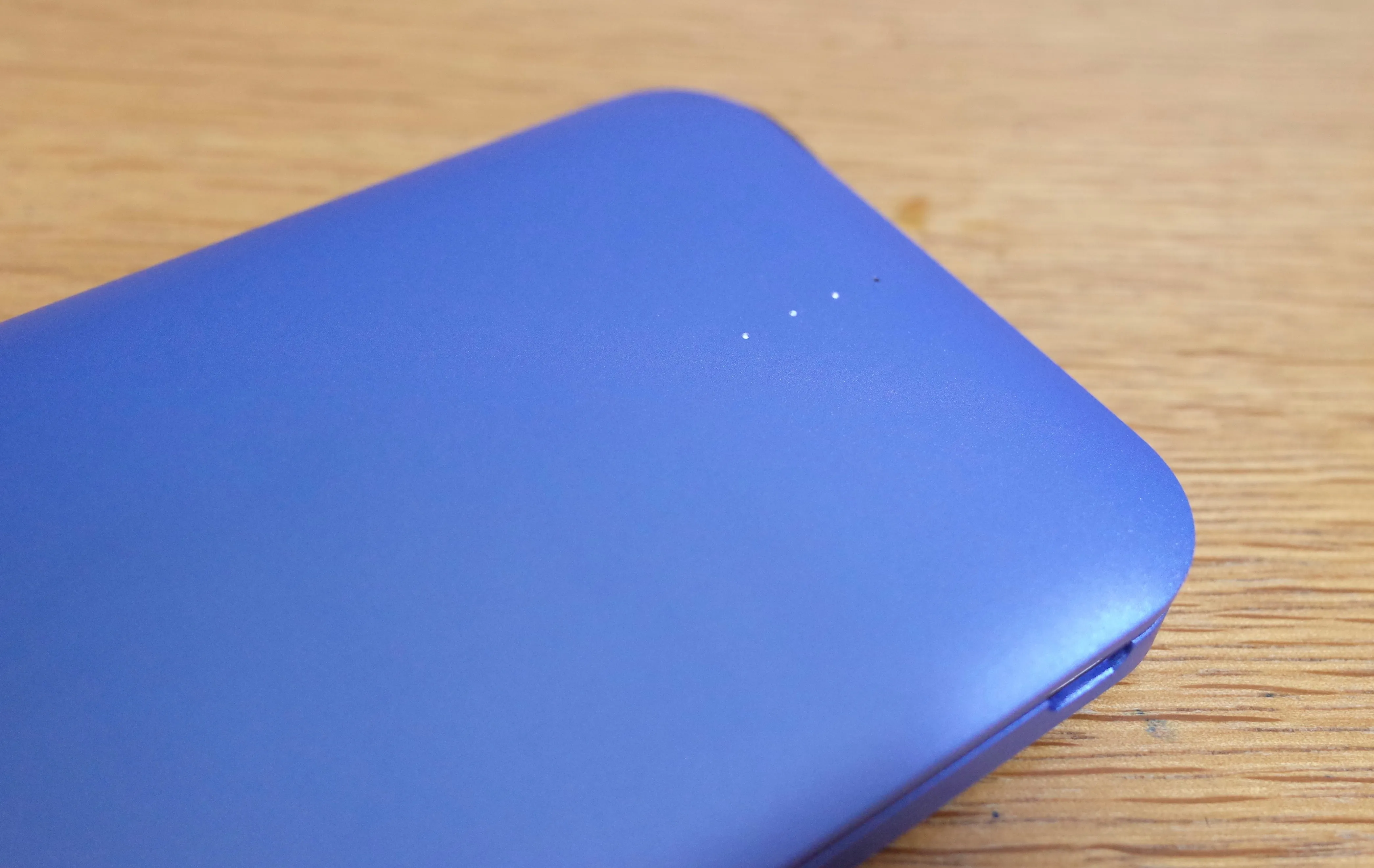 本体の残り容量は4つのLEDで確認が可能。本体を振ると光ります。斬新。
