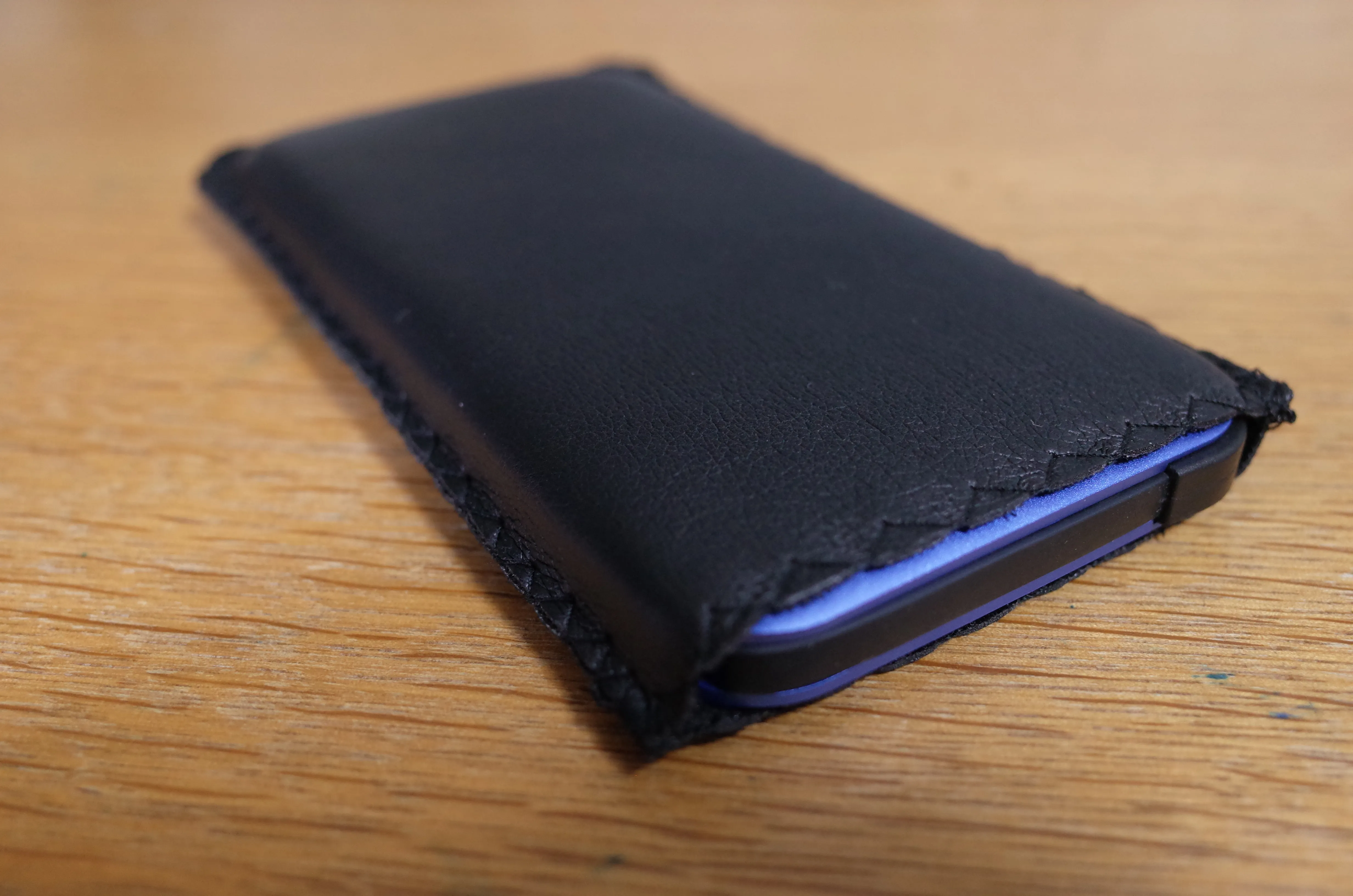 市松模様の箱に入って到着。Amazonの製品紹介の写真では濃いブルーですが、実物はややバイオレットよりのブルーです。実物の方がいい色ではありますが、色が違いすぎる…