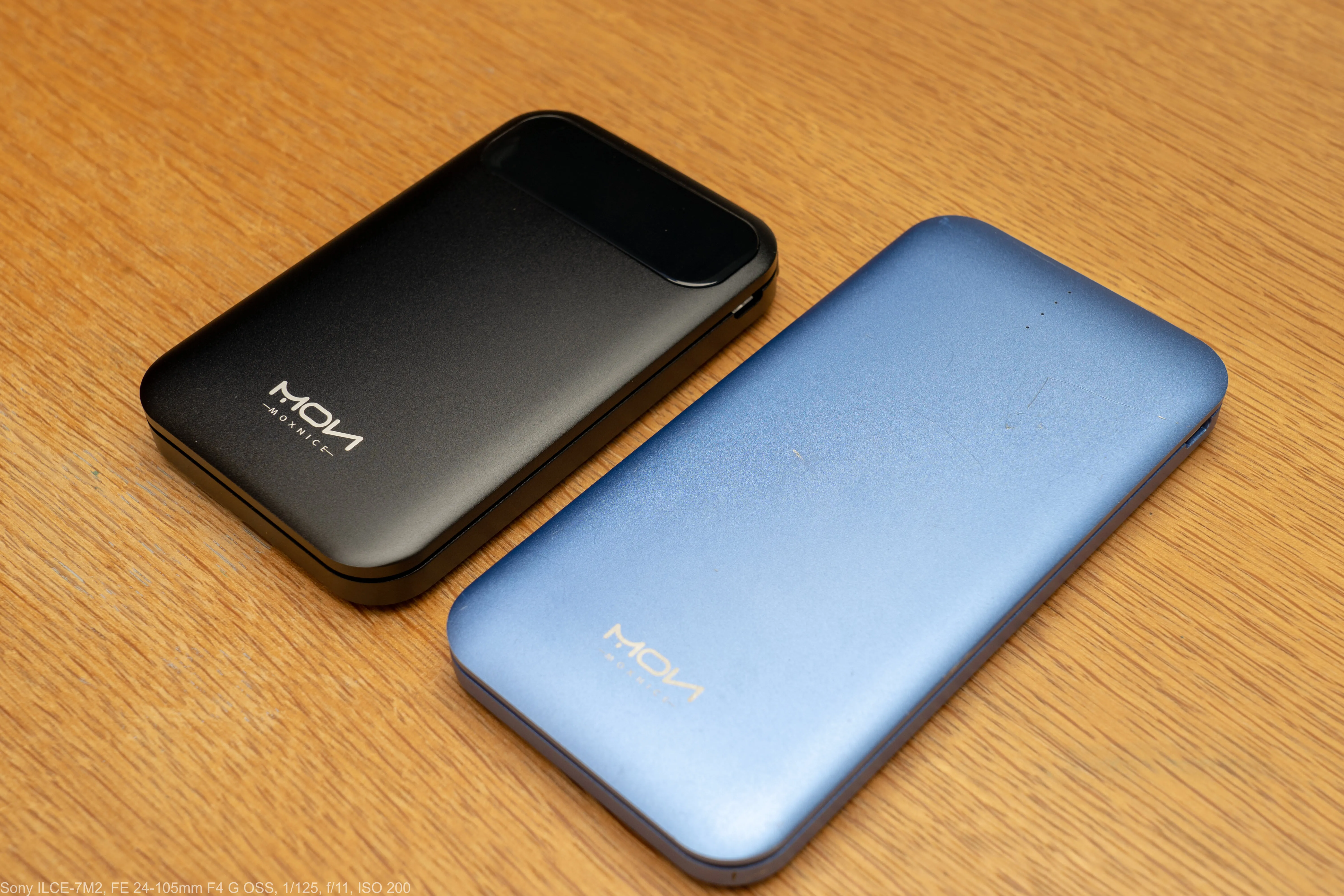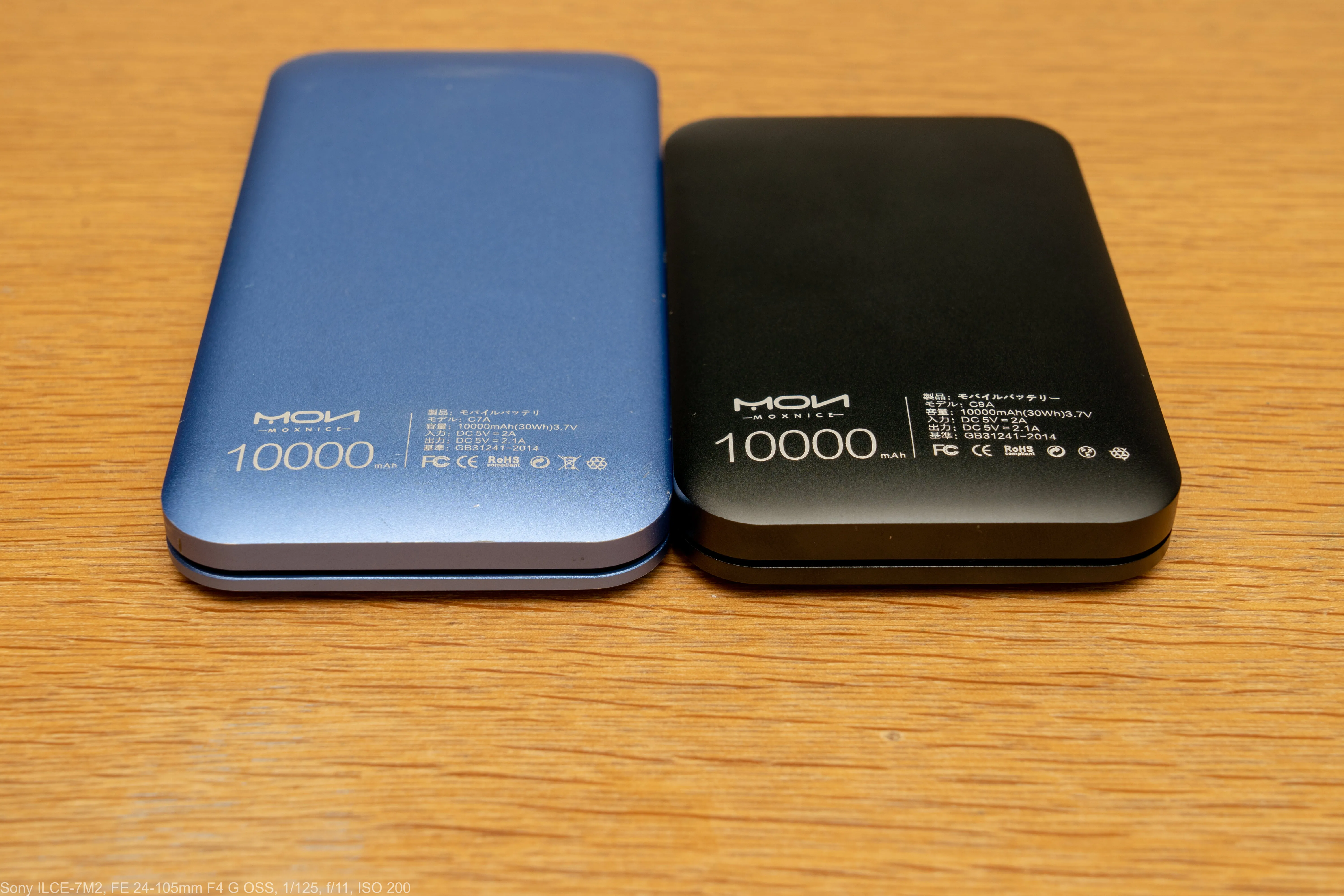 MOXNICEのモバイルバッテリーは以前に「C7A」をレビューしています。C7Aも同じく10000mAhなのですが、サイズはかなり違いますね。表面の質感やデザインは似ています。指紋の付きにくい梨地仕上げのアルミボディです。