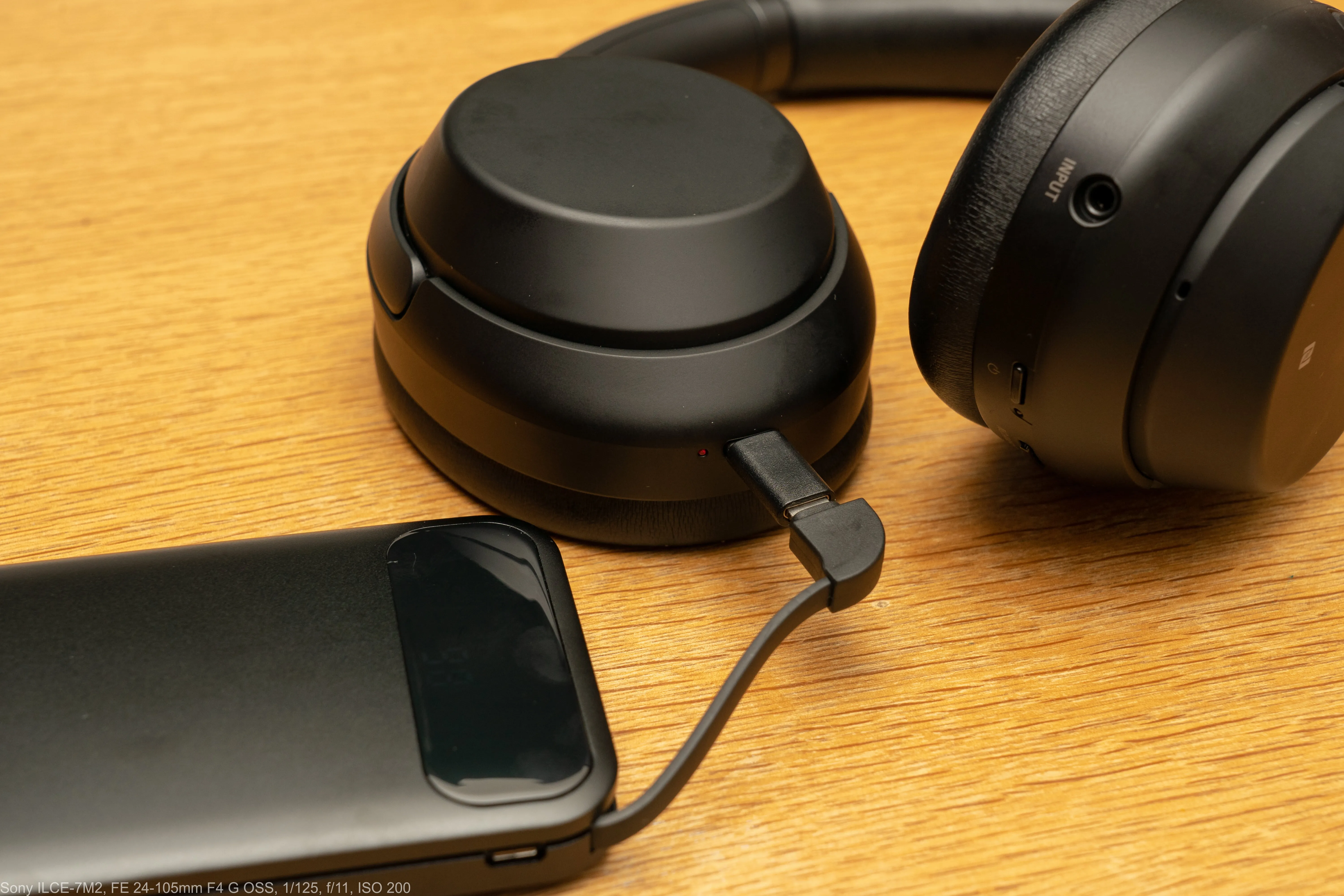 WH-1000XM3と。Type-Cで充電する機器が最近増えてきているので、ケーブルを別途持ち歩かなくともType-Cにも接続可能となるのは便利です。