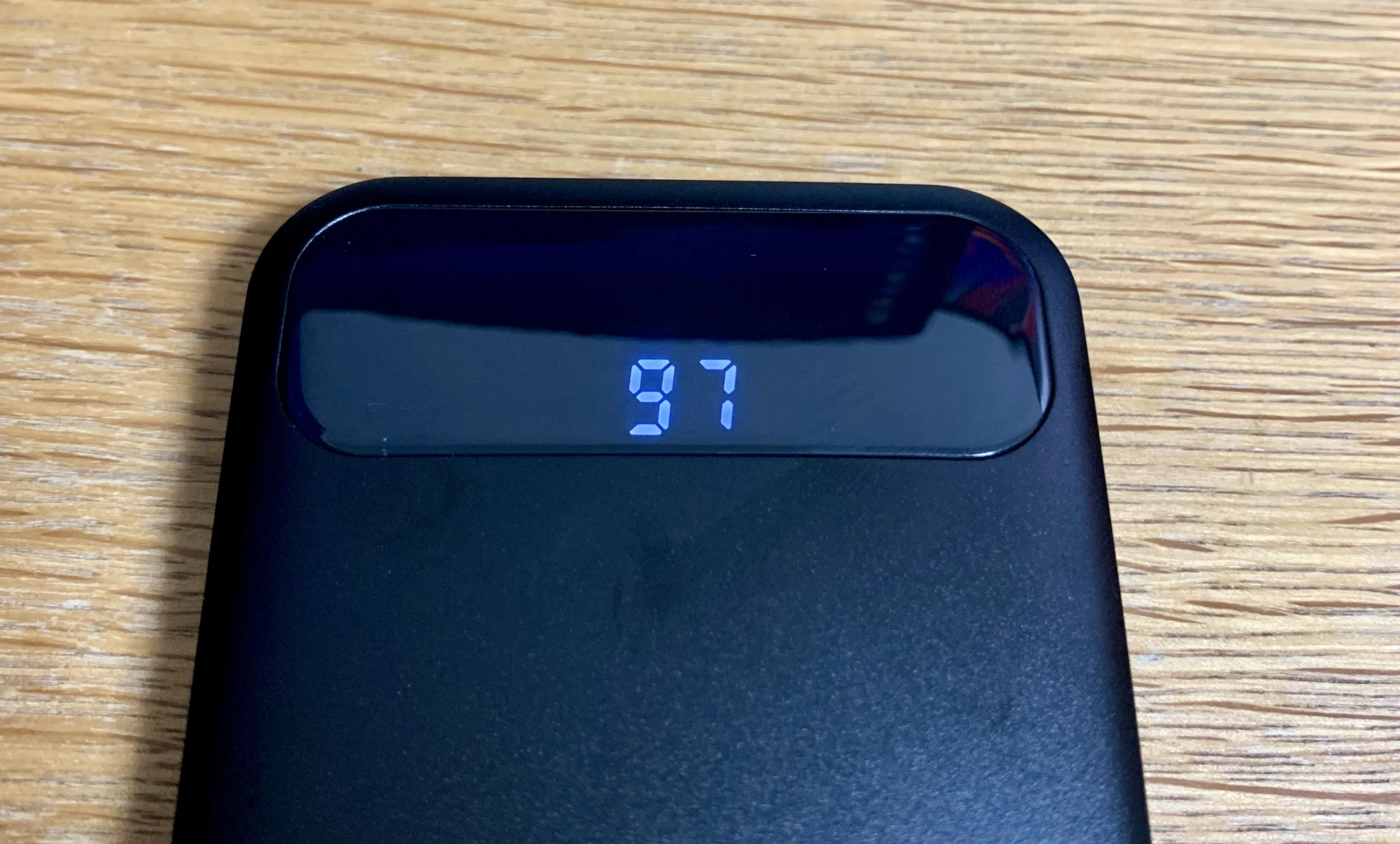 C7Aにはなかった機能として、残り容量を数値で表示することが可能。ディスプレイ部を指でタッチすると表示されます。数値表示されるタイプのモバイルバッテリーは初めて使いましたが、これは便利ですね。