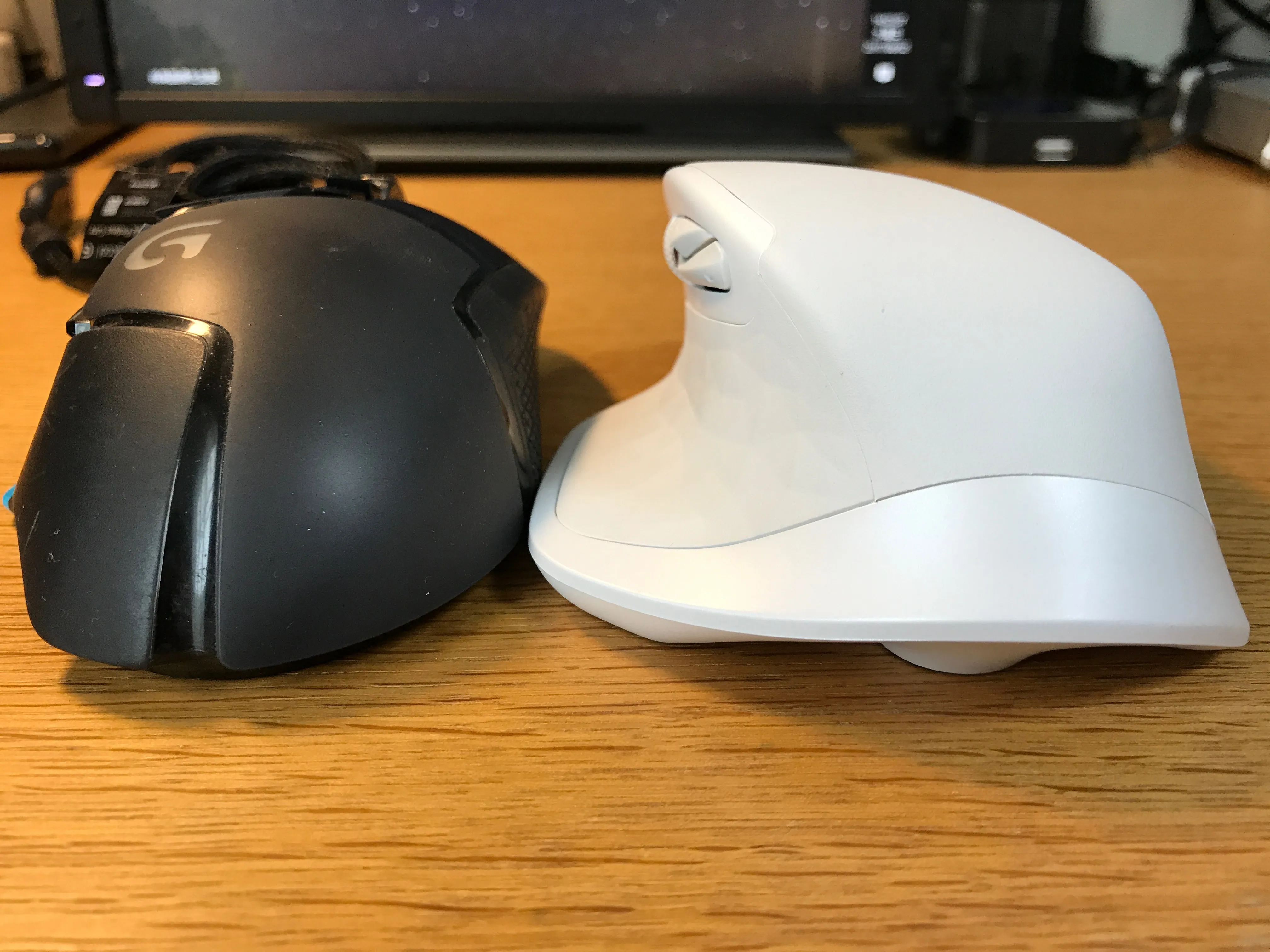 折角なので、今までメインのマウスとして使ってきたロジクールのゲーミングマウス、G502とサイズ感を比較してみます。