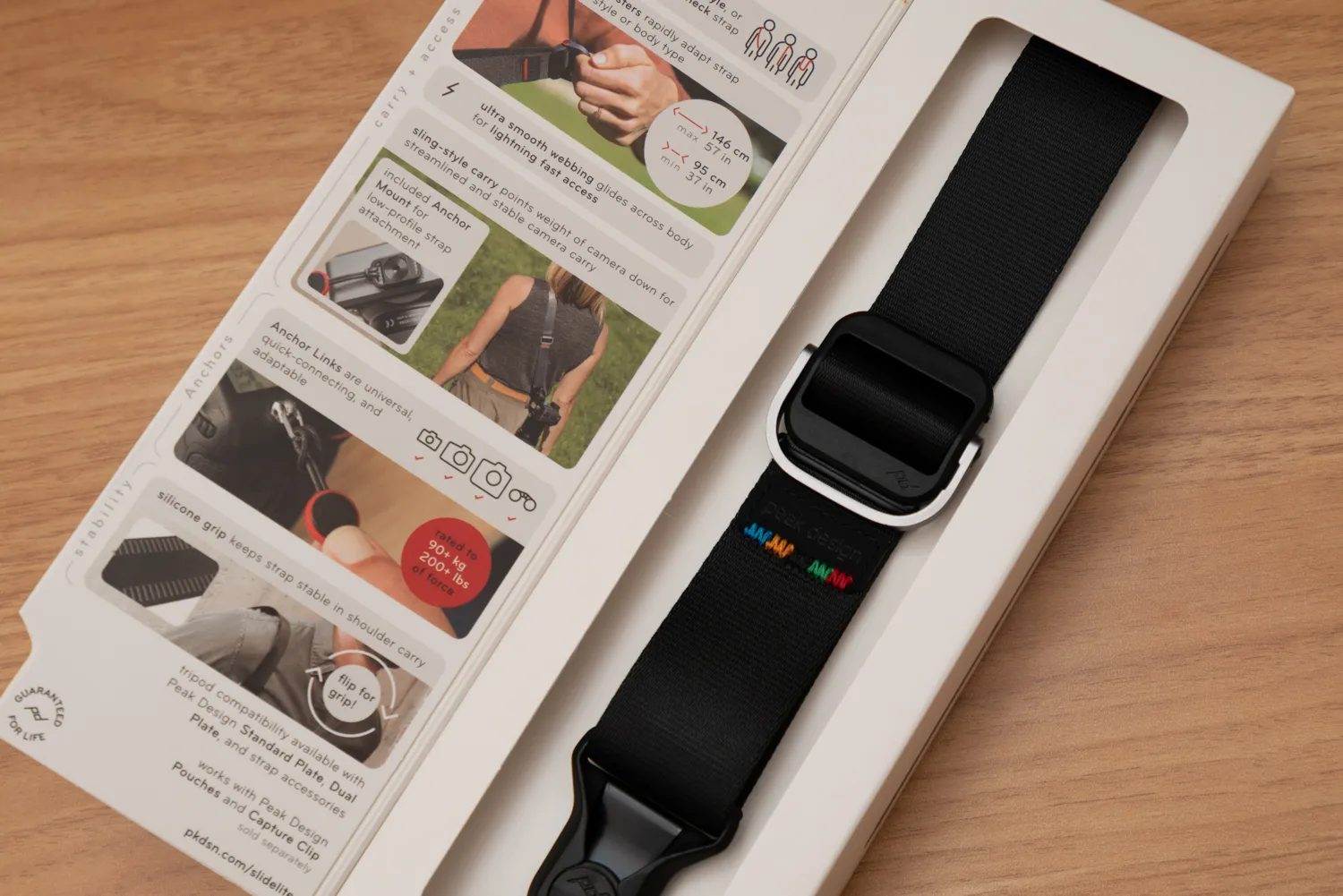 今回のお目当てはカメラストラップの「スライド ライト」のオフィシャルストア限定デザイン。スライド ライトは瞬時に長さ調整ができる便利なカメラストラップ。ずっと気になってはいたのですが、定番すぎて他の人と被りがちなのがなんだか嫌で買わずにいました。
