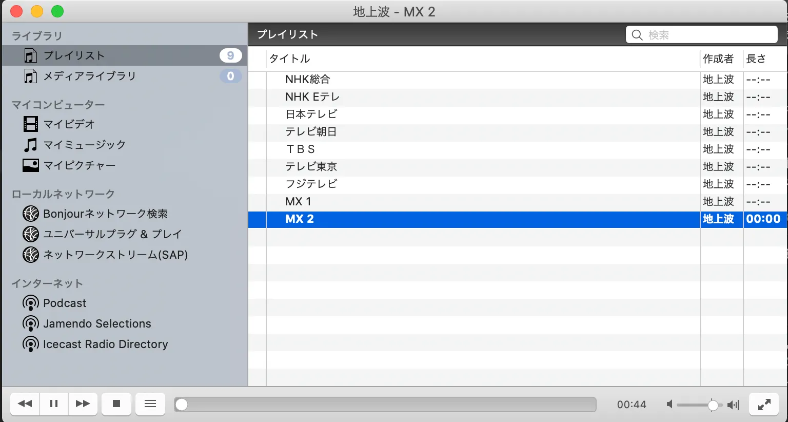 ファイルをVLCで開くとリアルタイム視聴が可能。再生するPCとRaspberry Pi間のネットワークが安定していれば、かなり安定して視聴できます。
