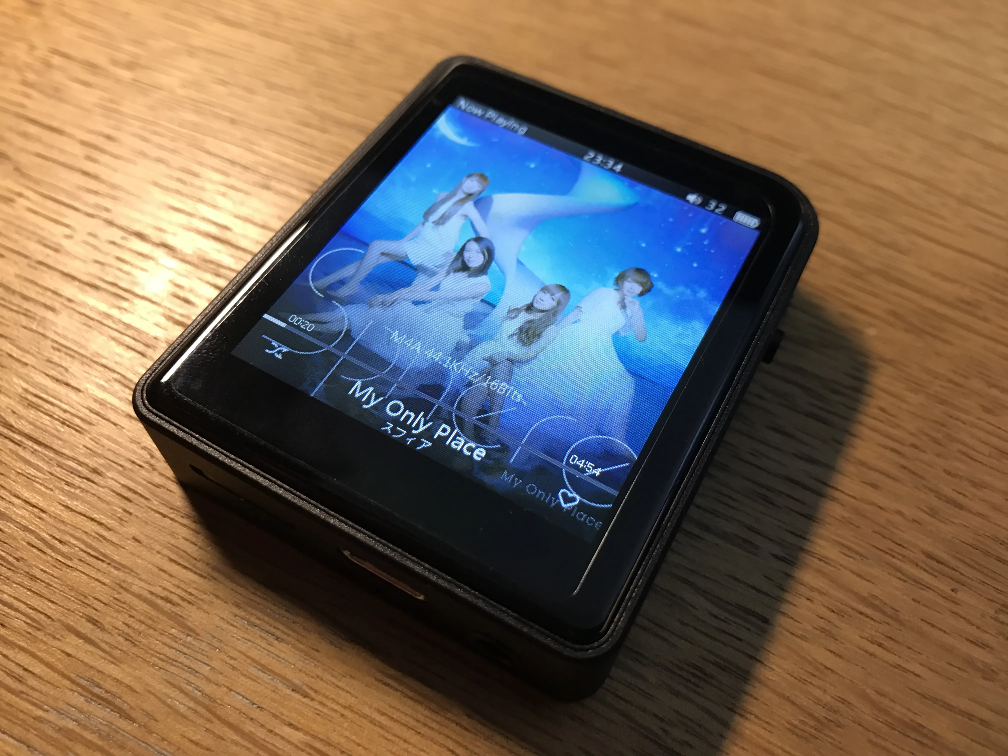 ベゼルはやや太めな印象。ディスプレイの解像度はそこそこ高く、細かい文字も読みやすいですが、発色はイマイチなのでアルバムアートワークは少し色あせて見えます。まぁそんなこと大して気にはならないので個人的には問題ナシ。