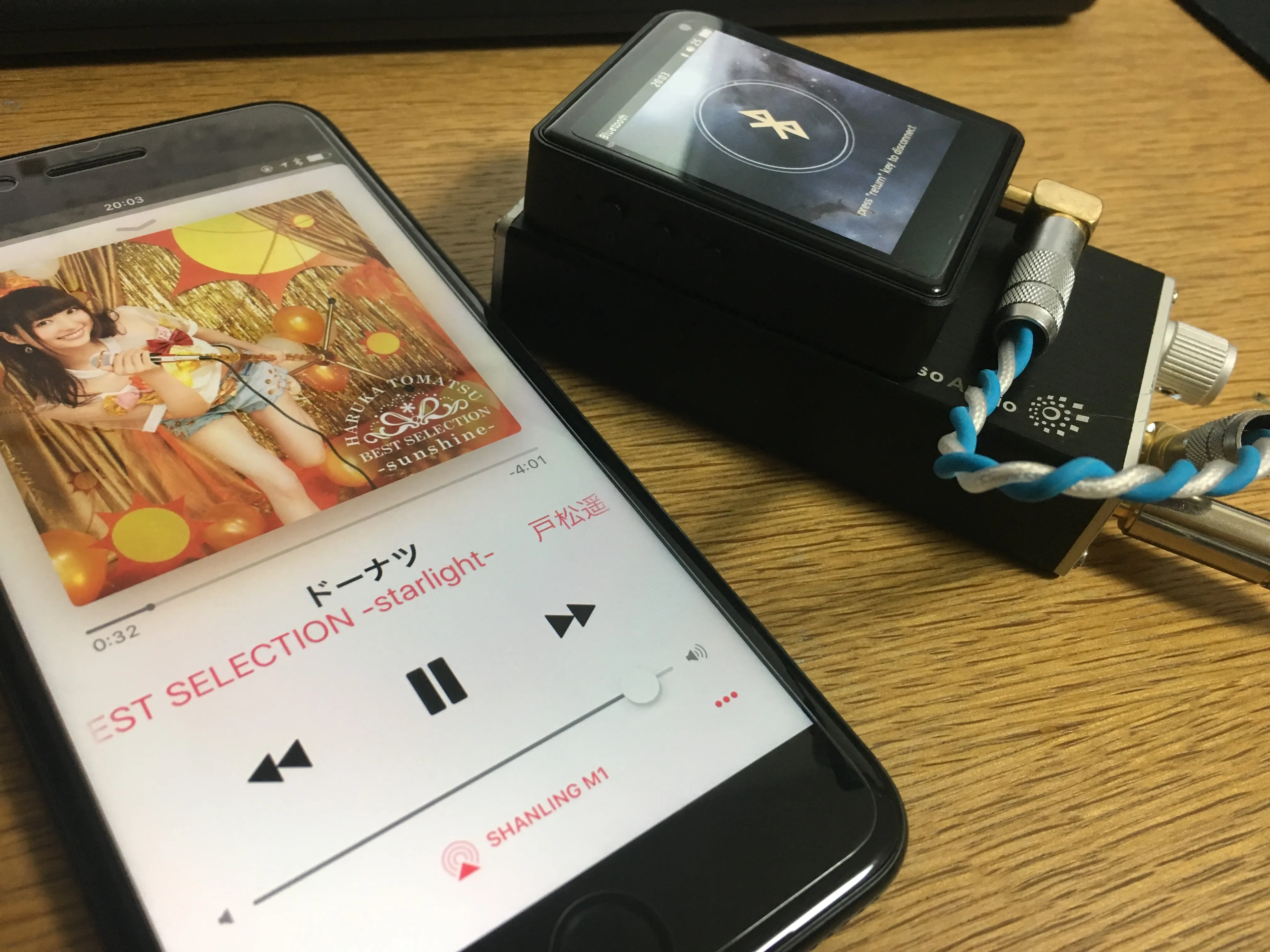 さて、個人的に気になるのはBluetoothレシーバ時の音質です。さらに今回はiPhoneとの接続になるので、音質面で有利なAptXは使えず、SBCでの接続となってしまいます。SBCは音質面では最も劣るので、気がかりな点です。 が、これがSBCでも案外いい音で驚きました。SBCは高域がカットされるなどと言われますが、正直よく分からない。これで十分じゃない?Shanling M1のDACとアンプが良い仕事をしているのでしょうか。とにかく、再生停止、曲選択をiPhoneで行えるのが非常に便利。オススメです。