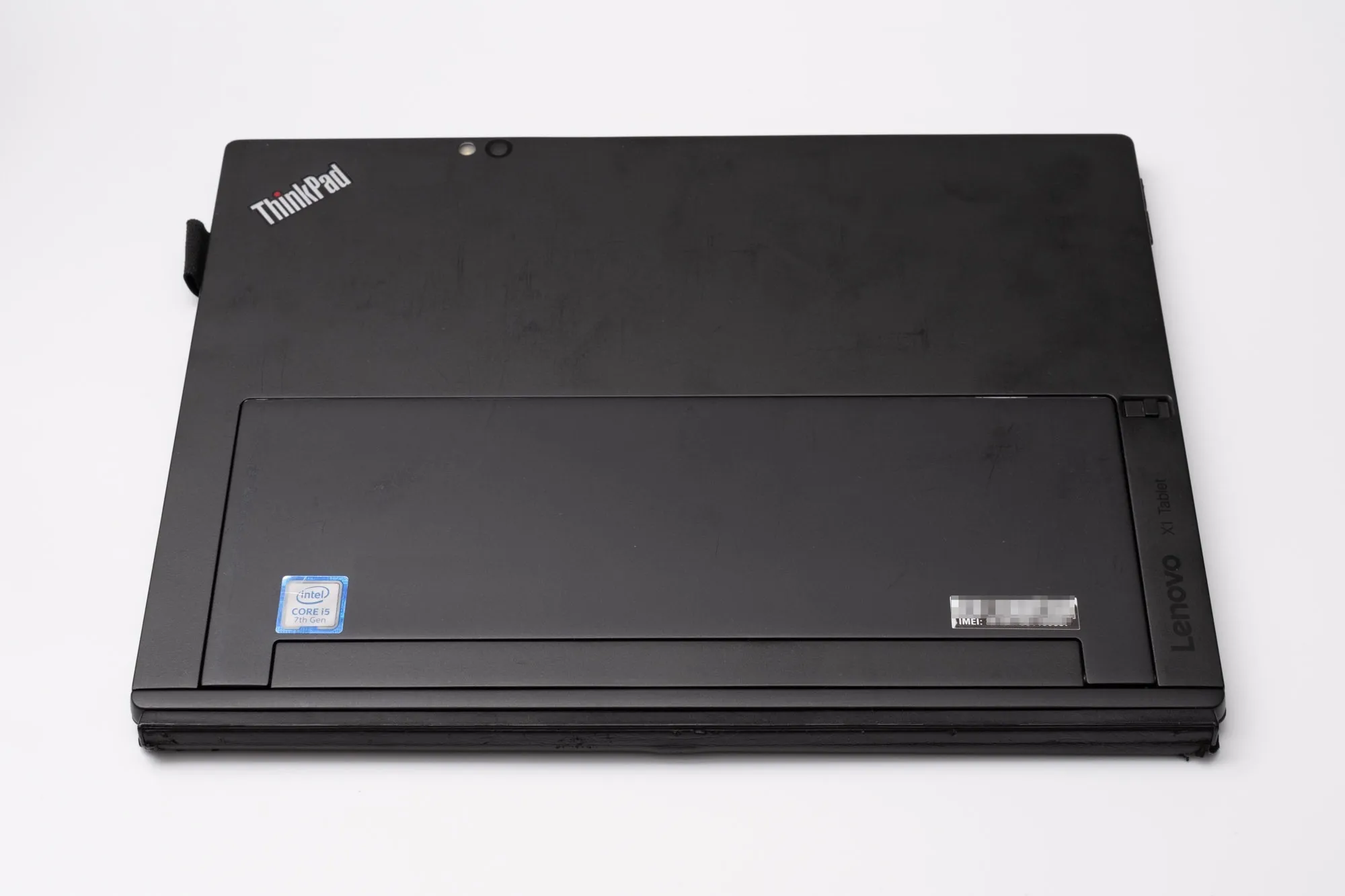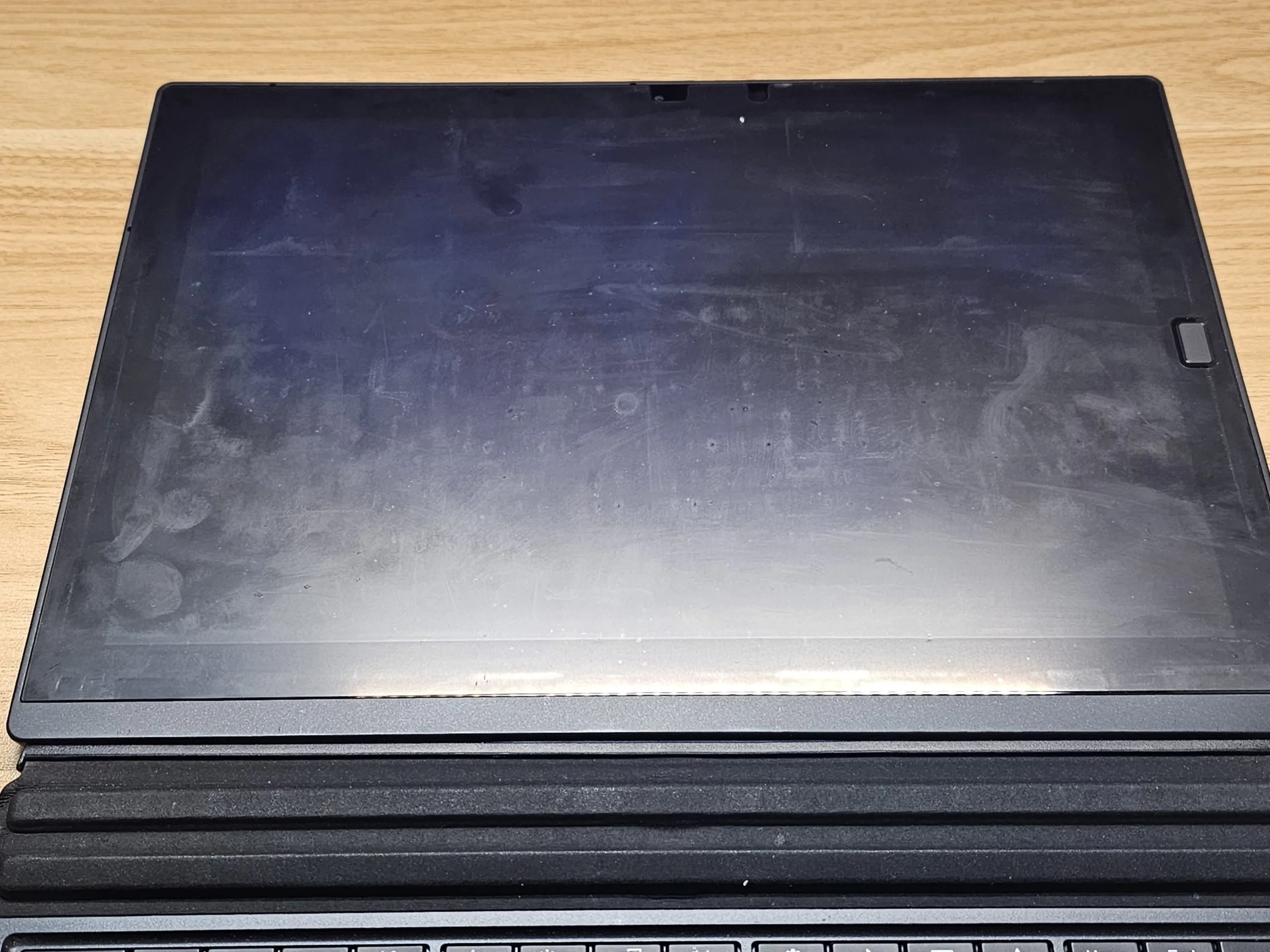 天板に細かいスレ傷や汚れはありますが、ThinkPadはどうしてもこうなりますね。湿らせたメラミンスポンジで擦るとかなり綺麗になります。