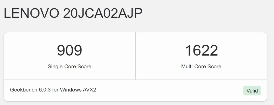 参考までに、Geekbench 6のスコアを計測しました。マルチこそ控えめですが、シングルは900を超えており、案外悪くないスコア。