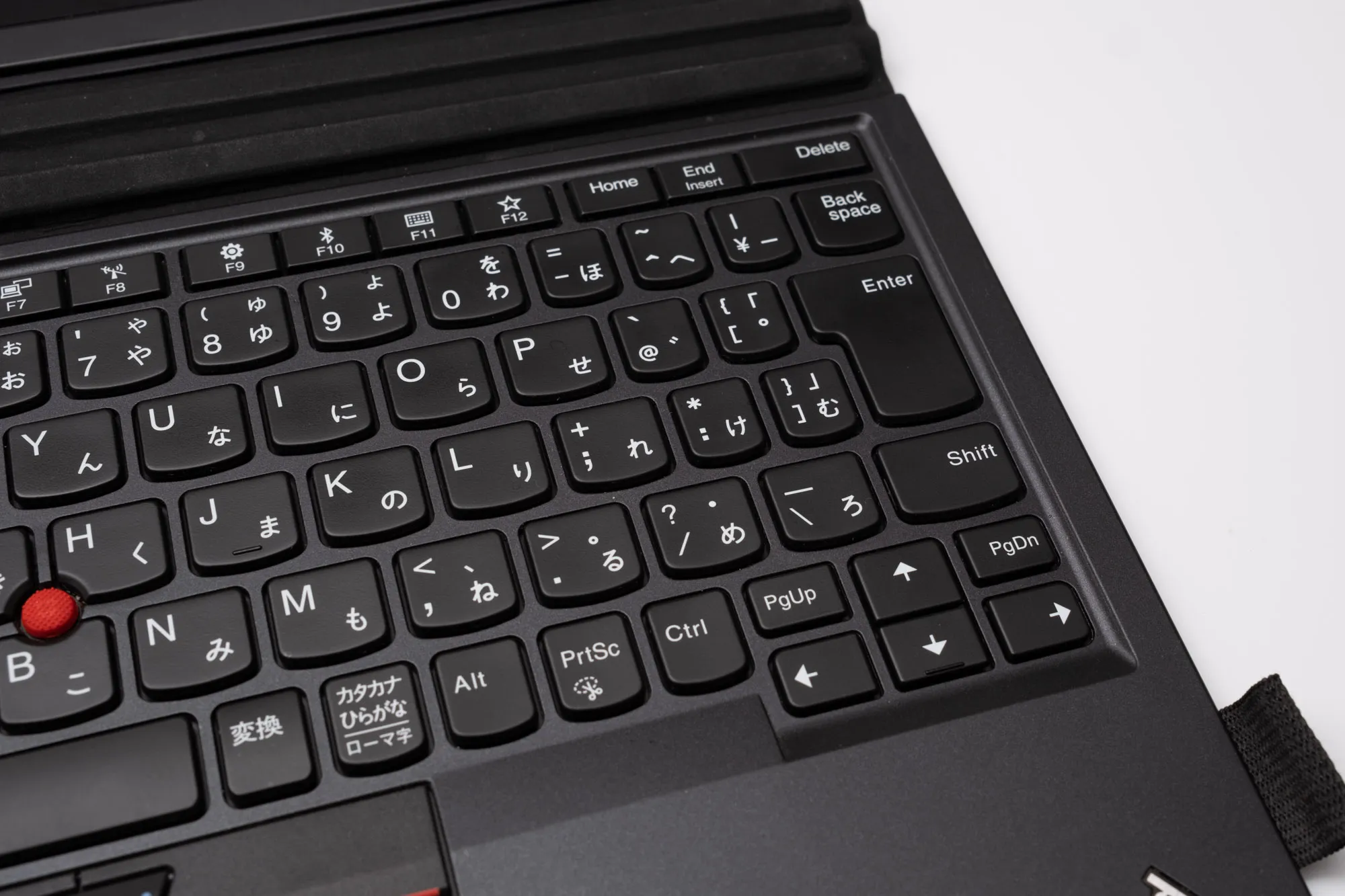 トラックポイントももちろん付いています。キートップは少々汚れがみられるものの、テカリやスレは少なく、それほど酷使されたものではない様子。