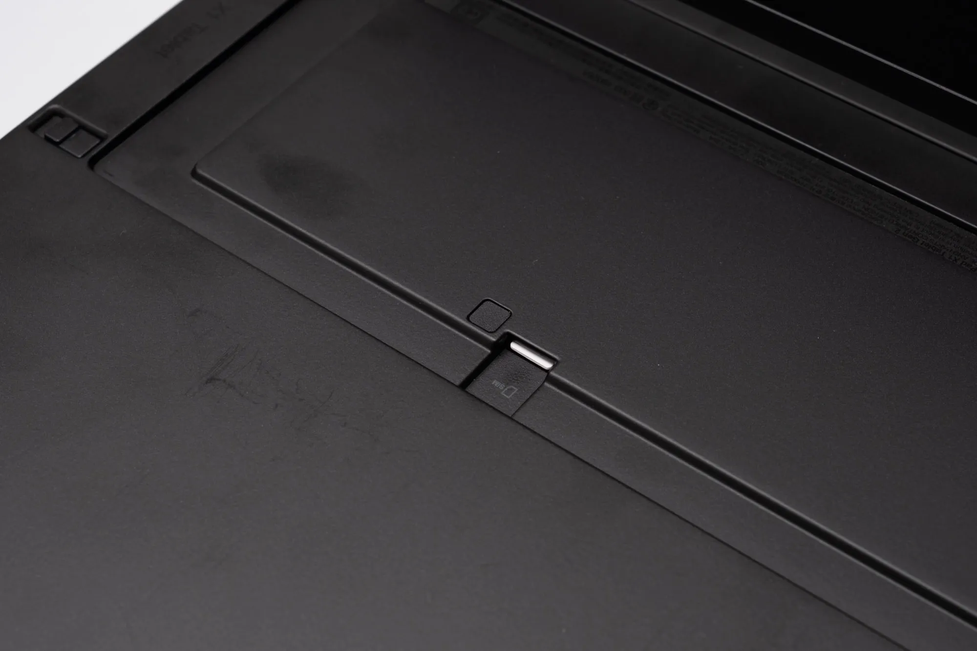 キックスタンドを跳ね上げると、2つのカードスロットが見えます。一つはnano SIMカードスロット、もう一つはmicroSDカードスロットとなります。そう、このX1 Tablet Gen2はLTE通信対応モデルとなります。UQモバイルのSIMカードを挿してみたところ、APN設定のみであっさりモバイル通信ができるようになりました。